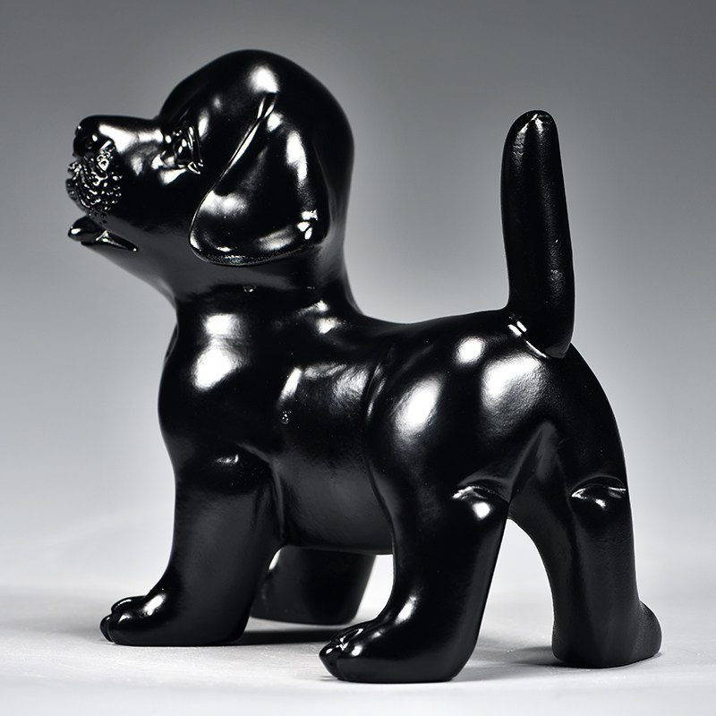 黑色木雕狗摆件十二生肖狗实木家居客厅电视柜办公装饰红木工艺品