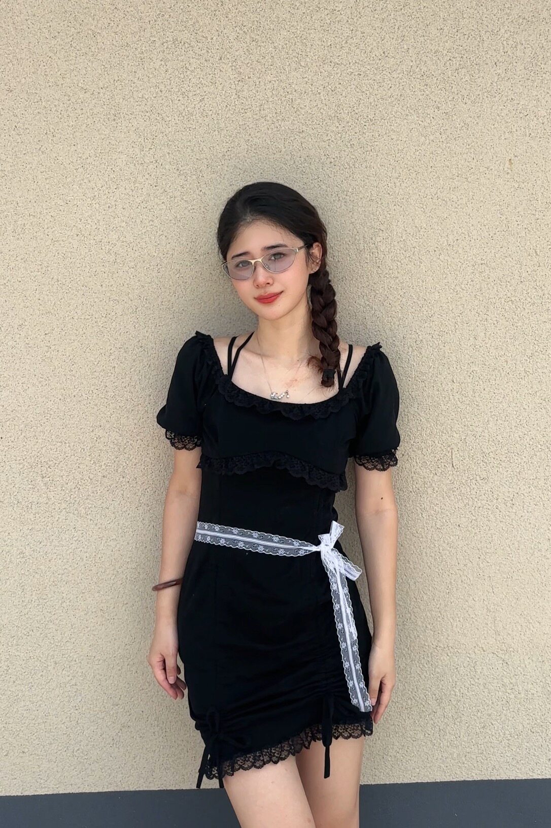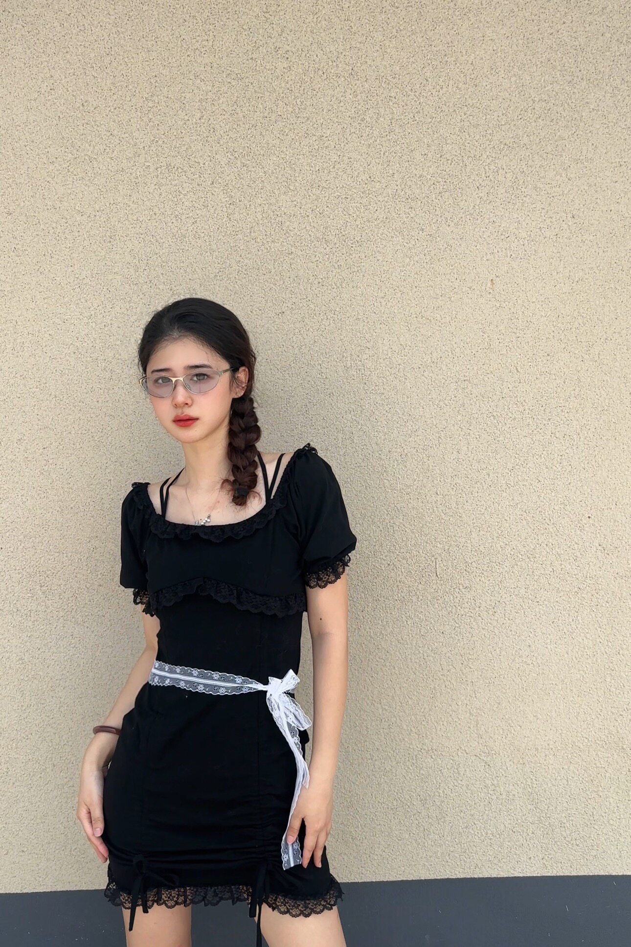 复古纯欲红色蕾丝细长条丝巾女韩系颈带装饰飘带辣妹春夏叠戴颈饰