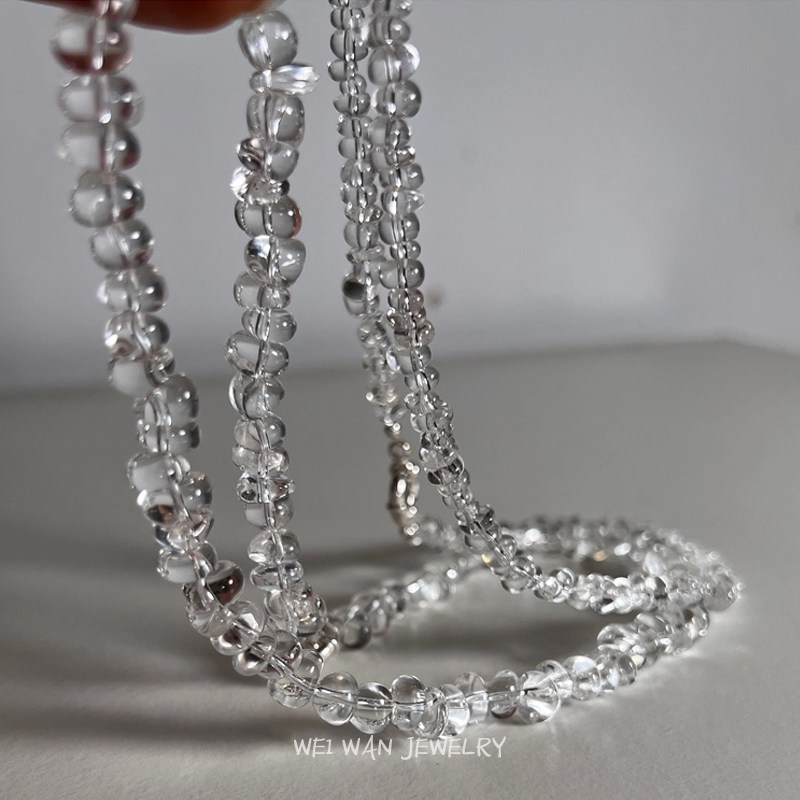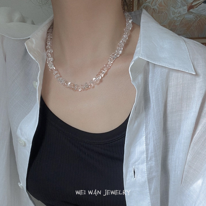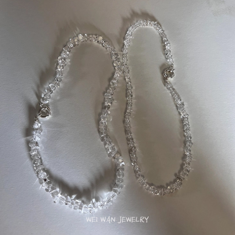 冰透天然白水晶项链不规则随型碎石水晶925银锁骨链