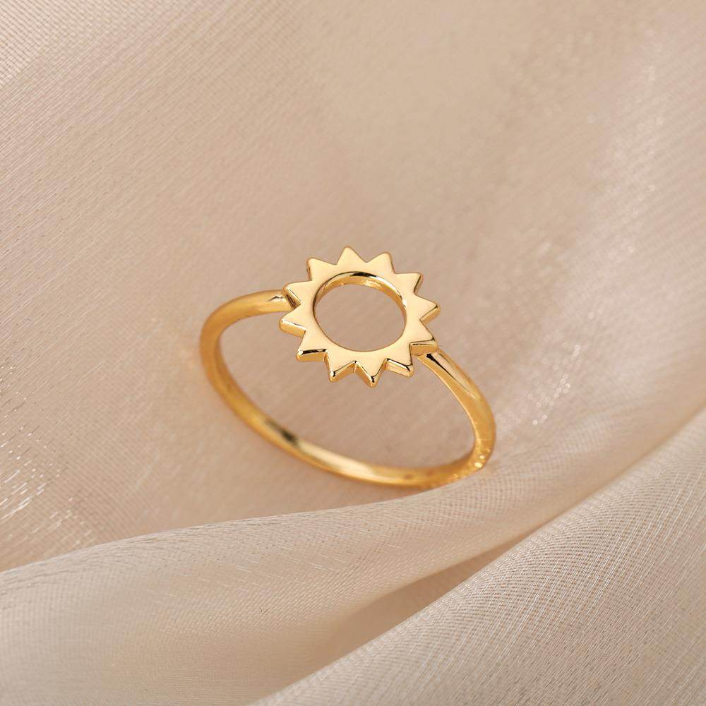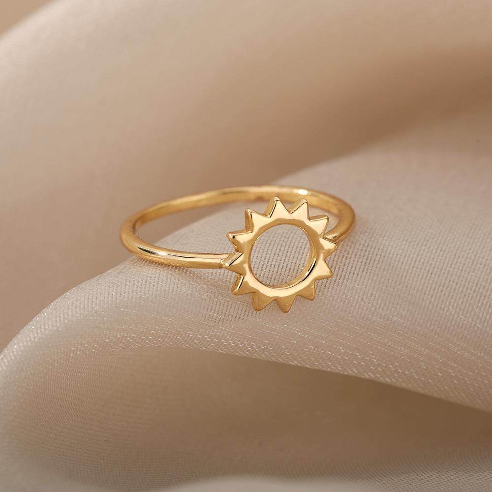 Hollow Sun Rings For Women Vintage Stainless Steel Gold Colo
