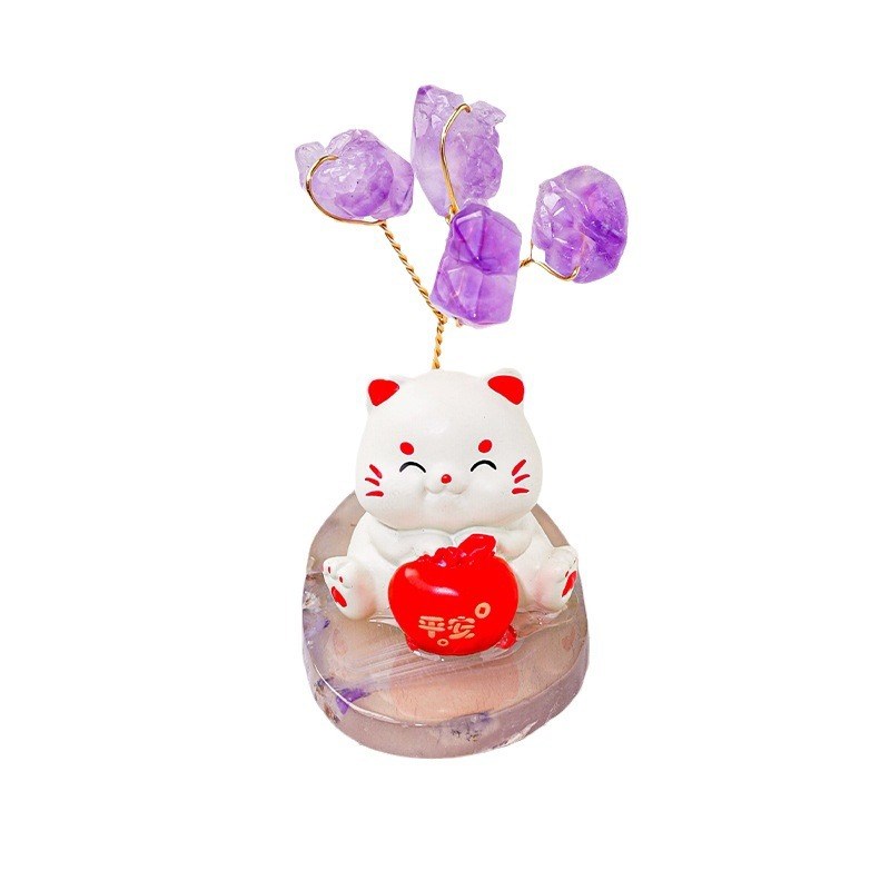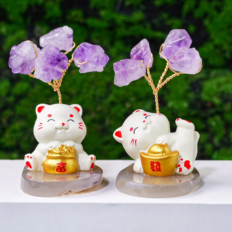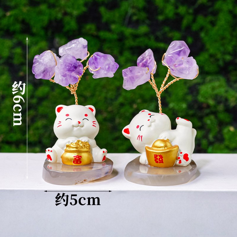 迷你天然水晶粉晶紫晶树发财树摆件办公居家桌面装饰可爱小礼物
