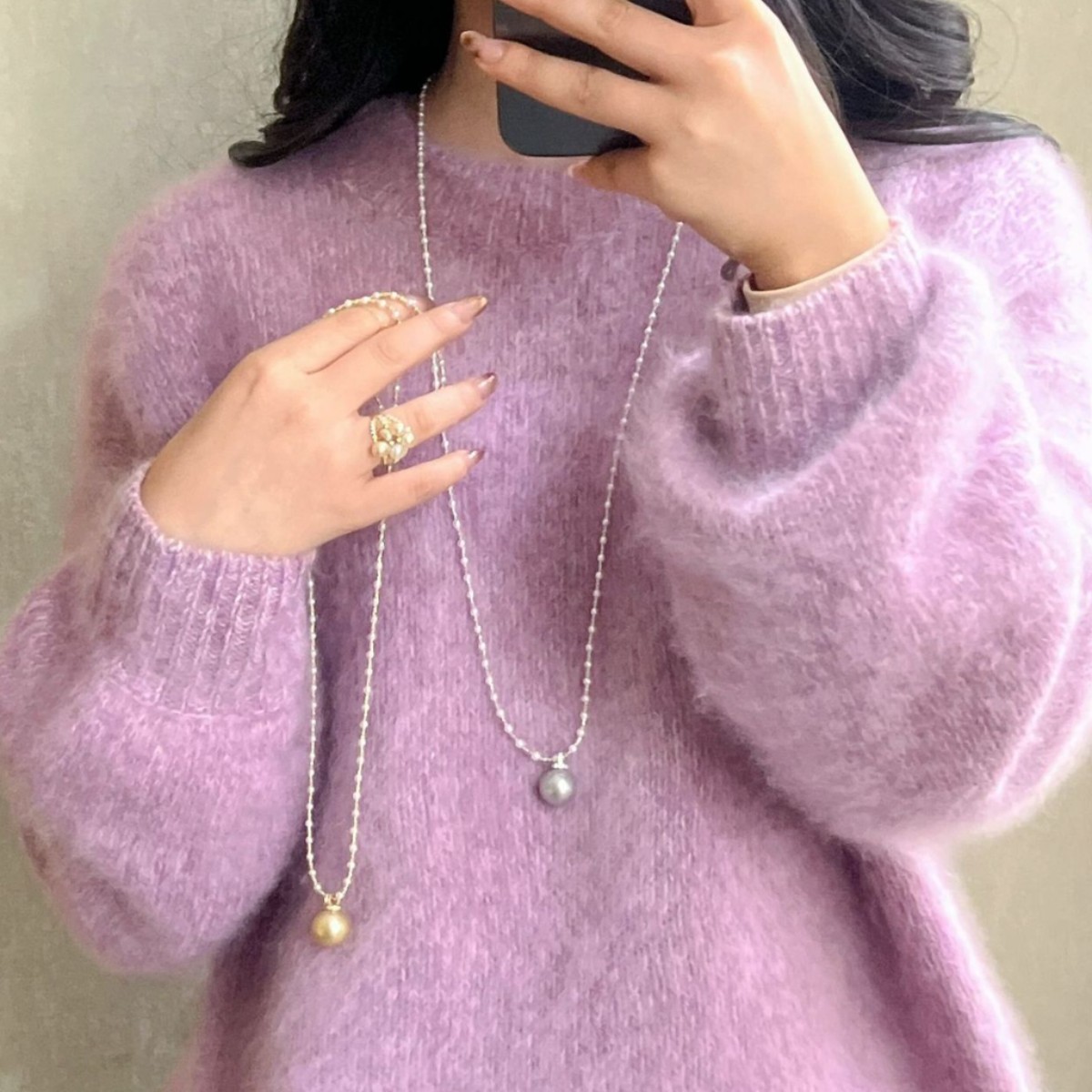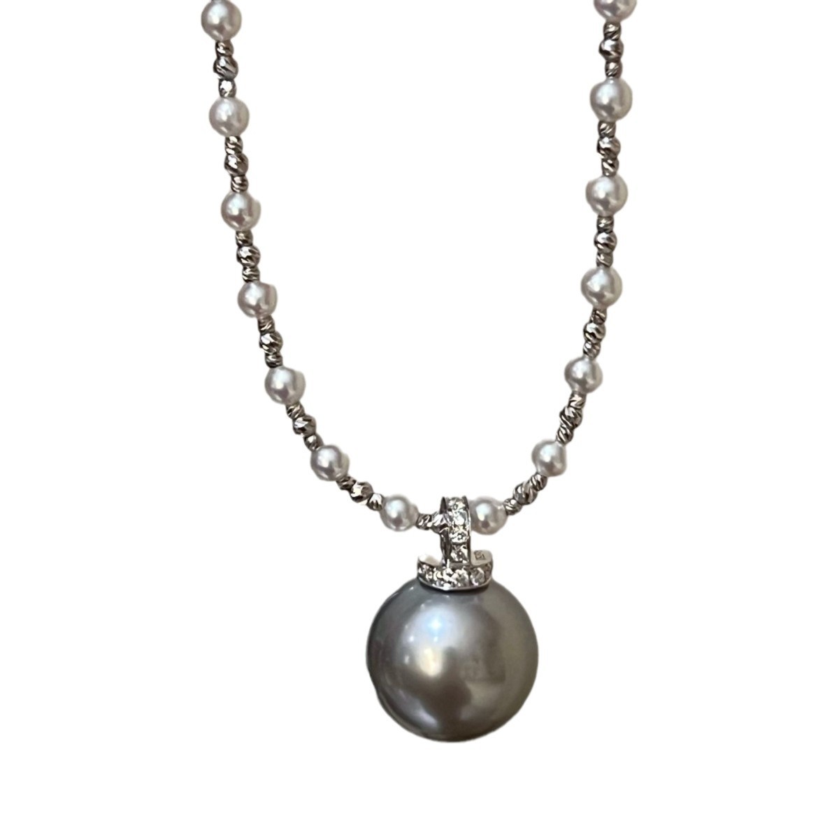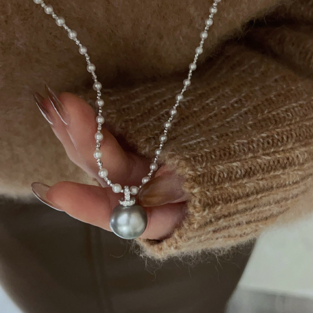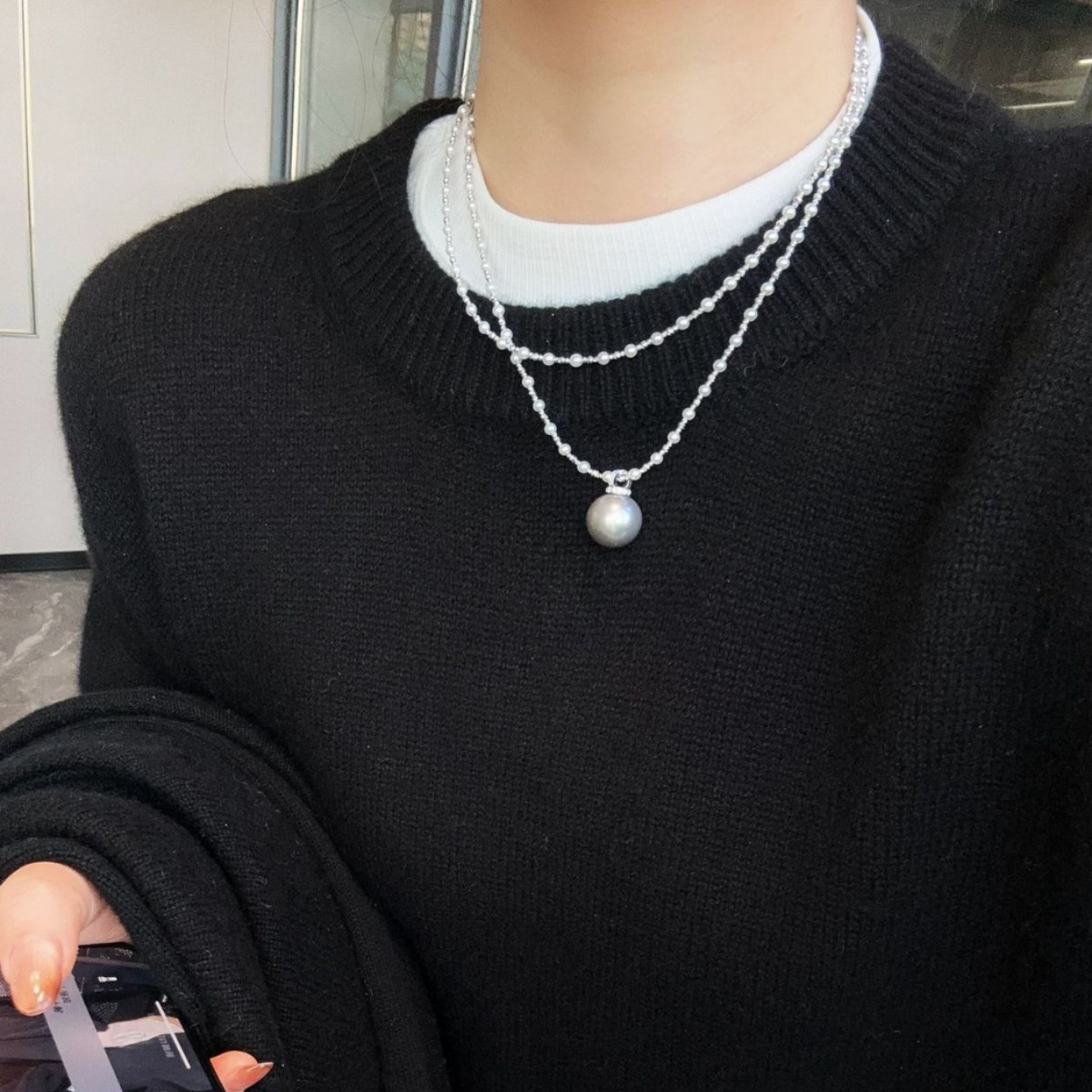 日本品质秋冬复古长款拼接切花珠灰色珍珠吊坠毛衣链一款多戴式休