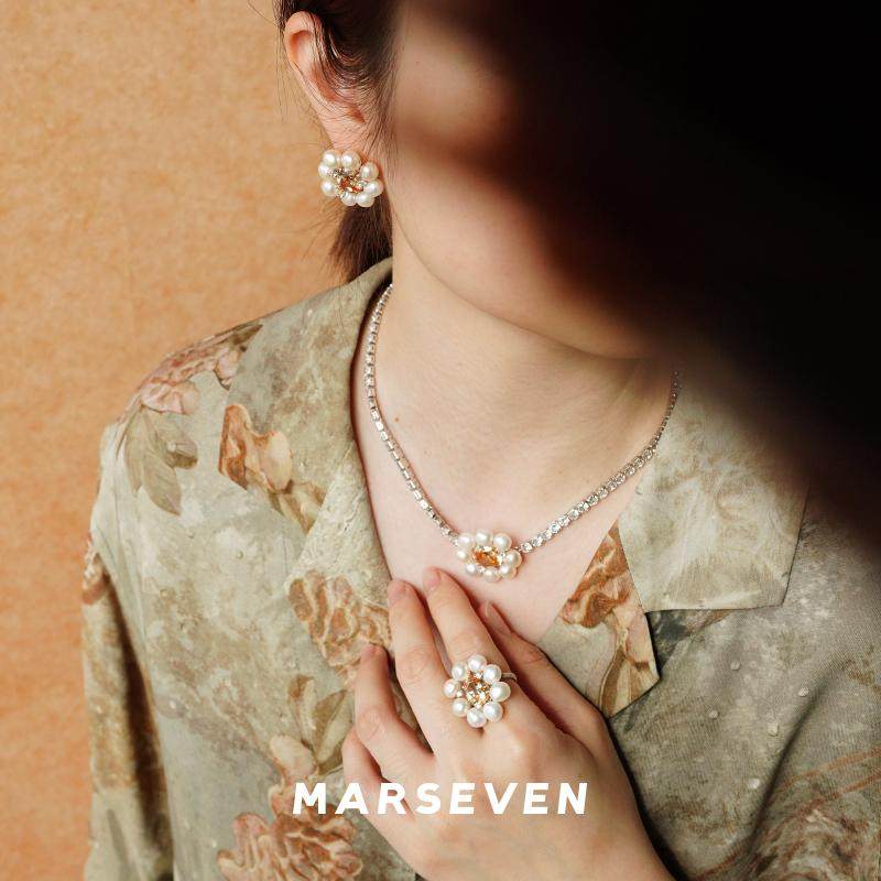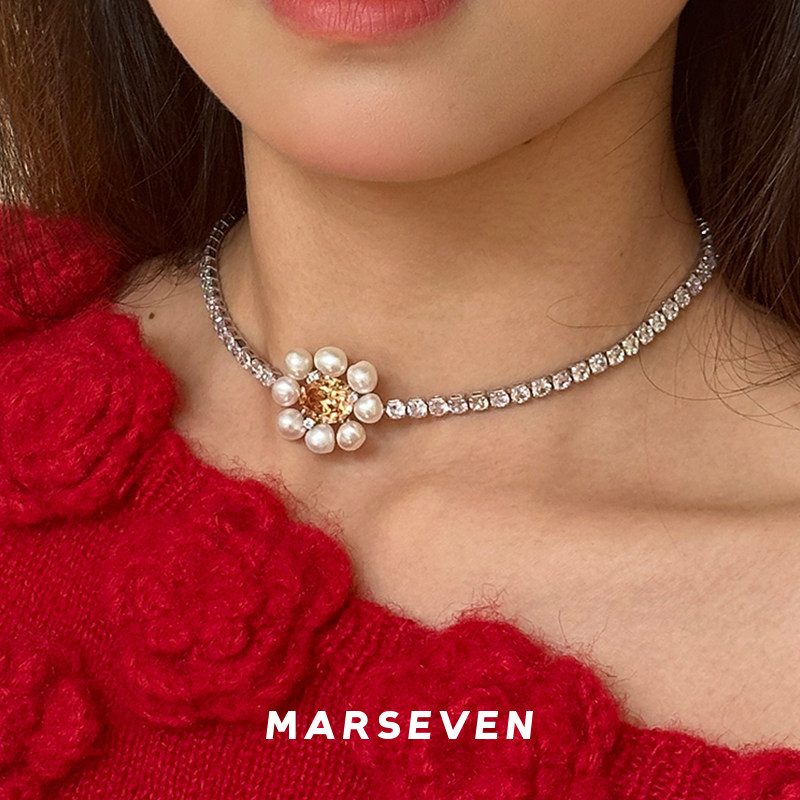MARSEVEN 闪光派对 珍珠雏菊项链 原创设计师小众气质锁骨链 默叙