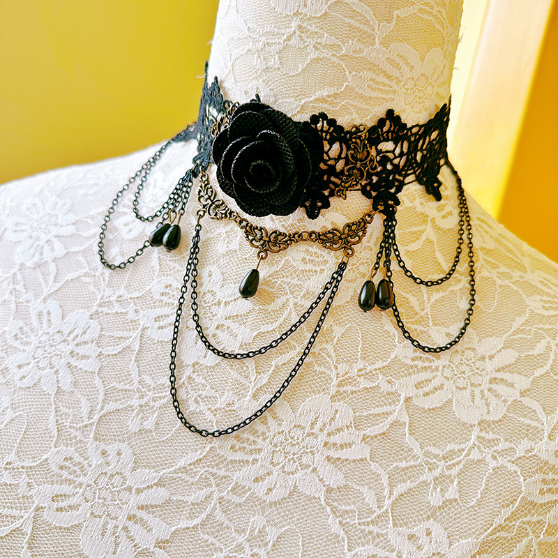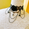 复古哥特风颈圈饰品黑色蕾丝珍珠吊坠小众项链女锁骨链LSXL013