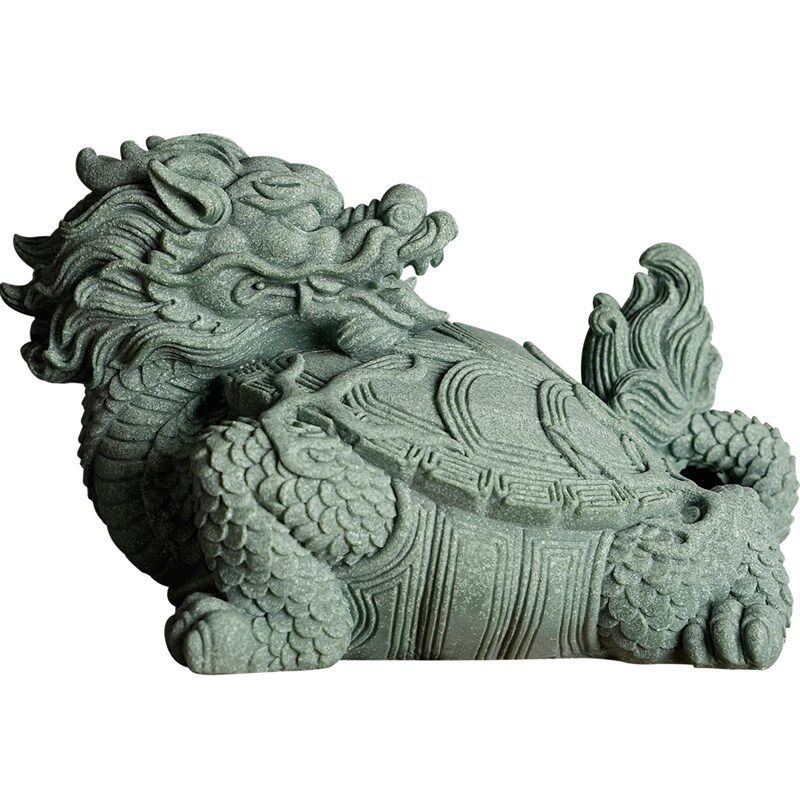 中式招财龙龟鱼缸沉底造景装饰品创意青砂石书房桌面瑞兽玄武摆件