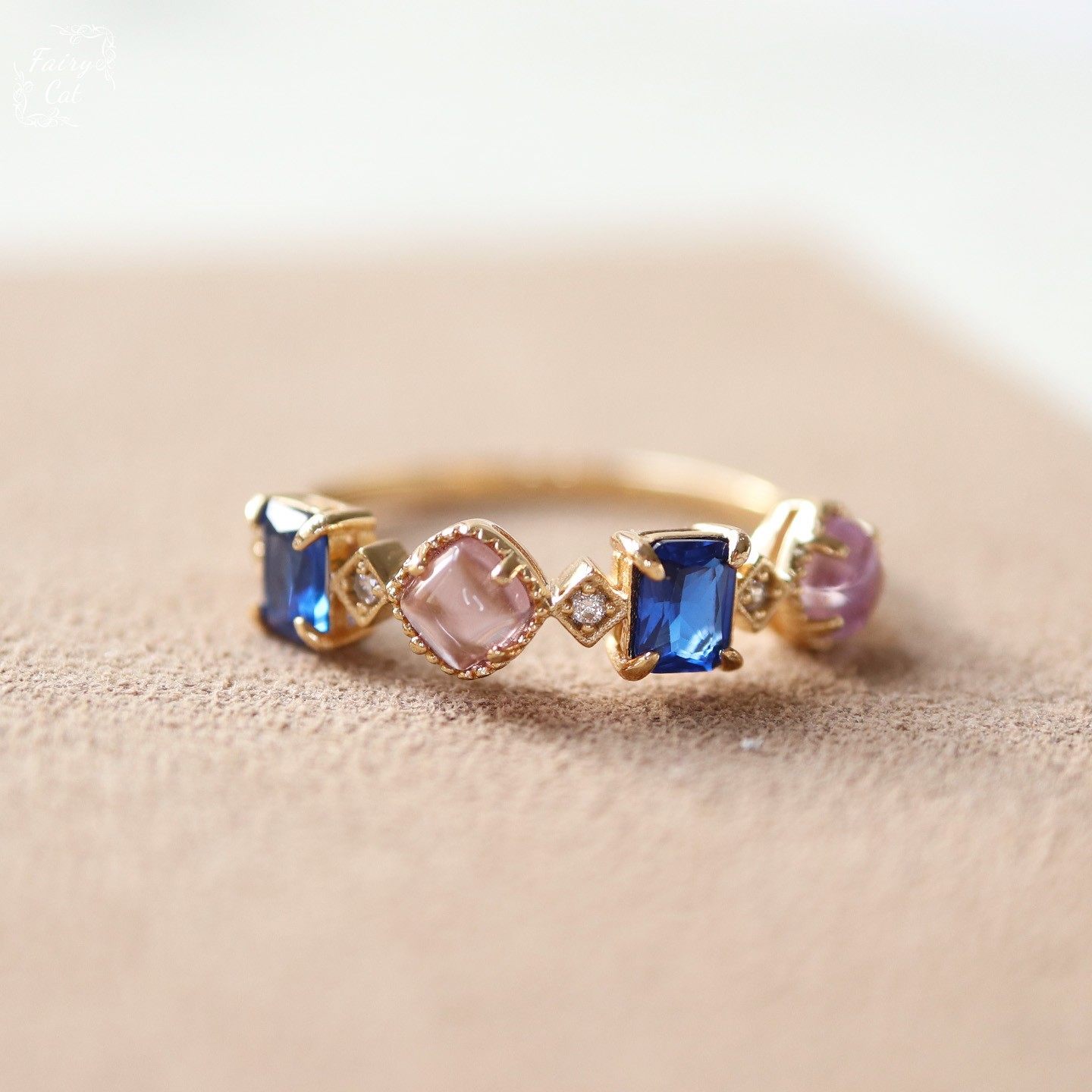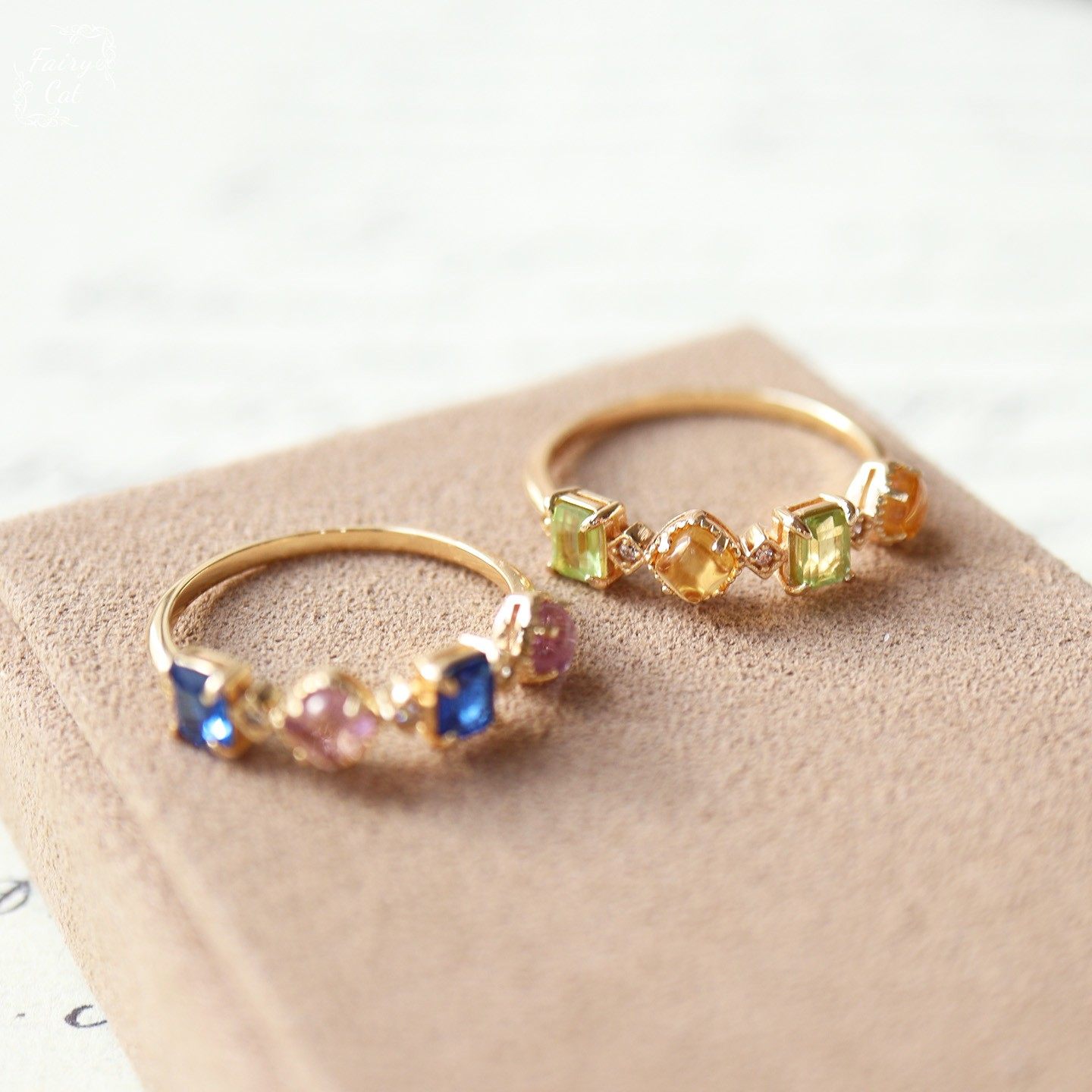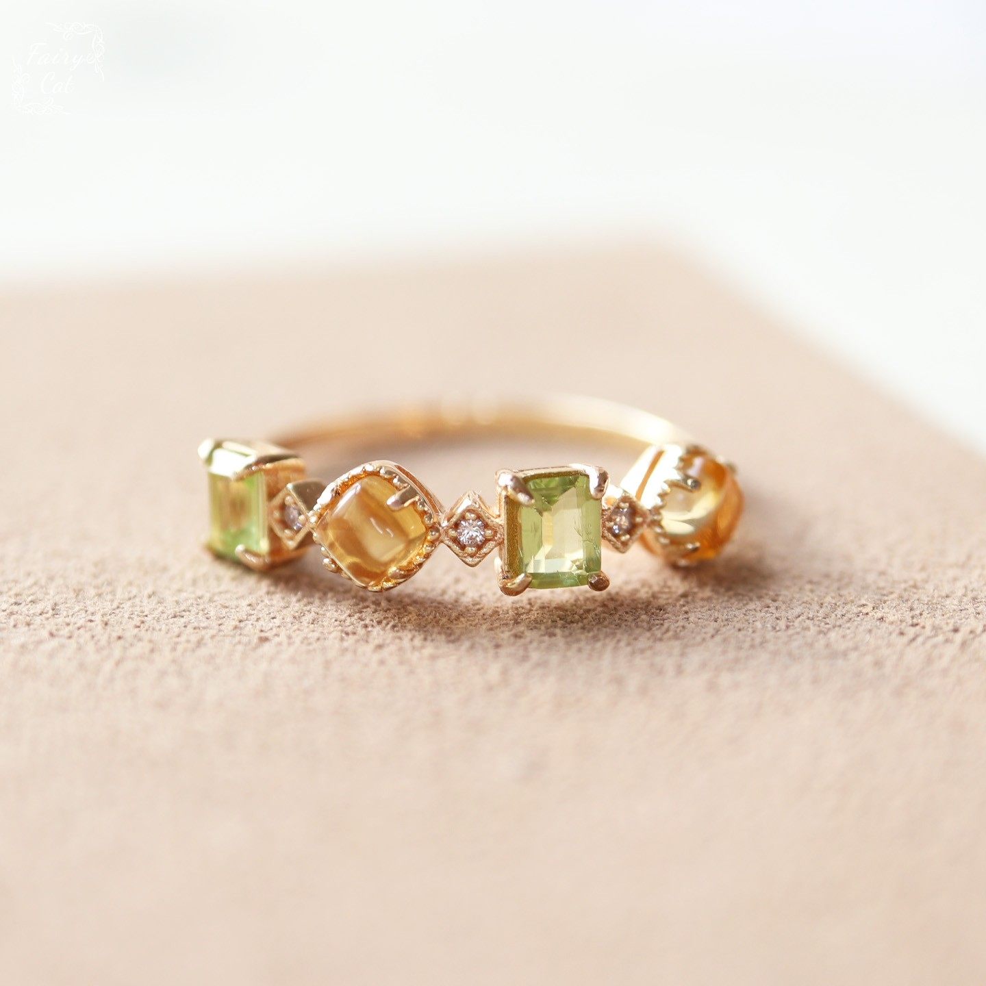 日系*限定色天然黄水晶橄榄石水晶宝石能量灭霸戒指925纯银指环