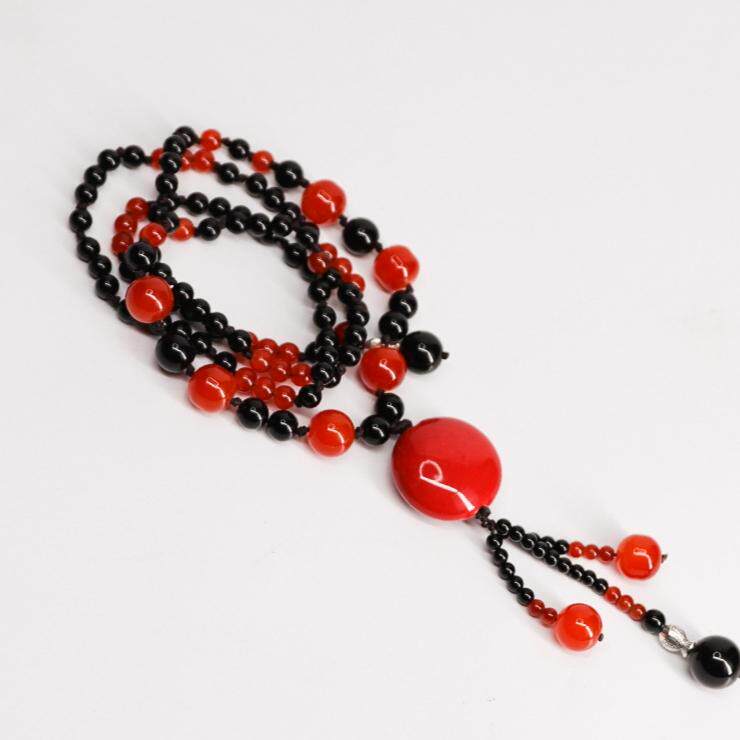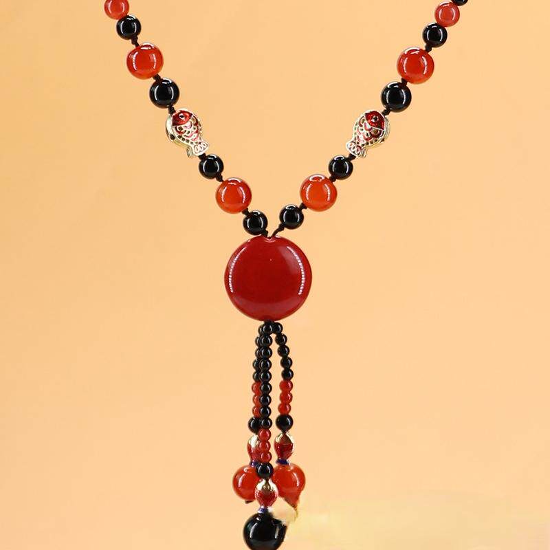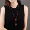 民族风项链长款复古风新中式毛衣链子挂件中国风配饰女红色装饰品