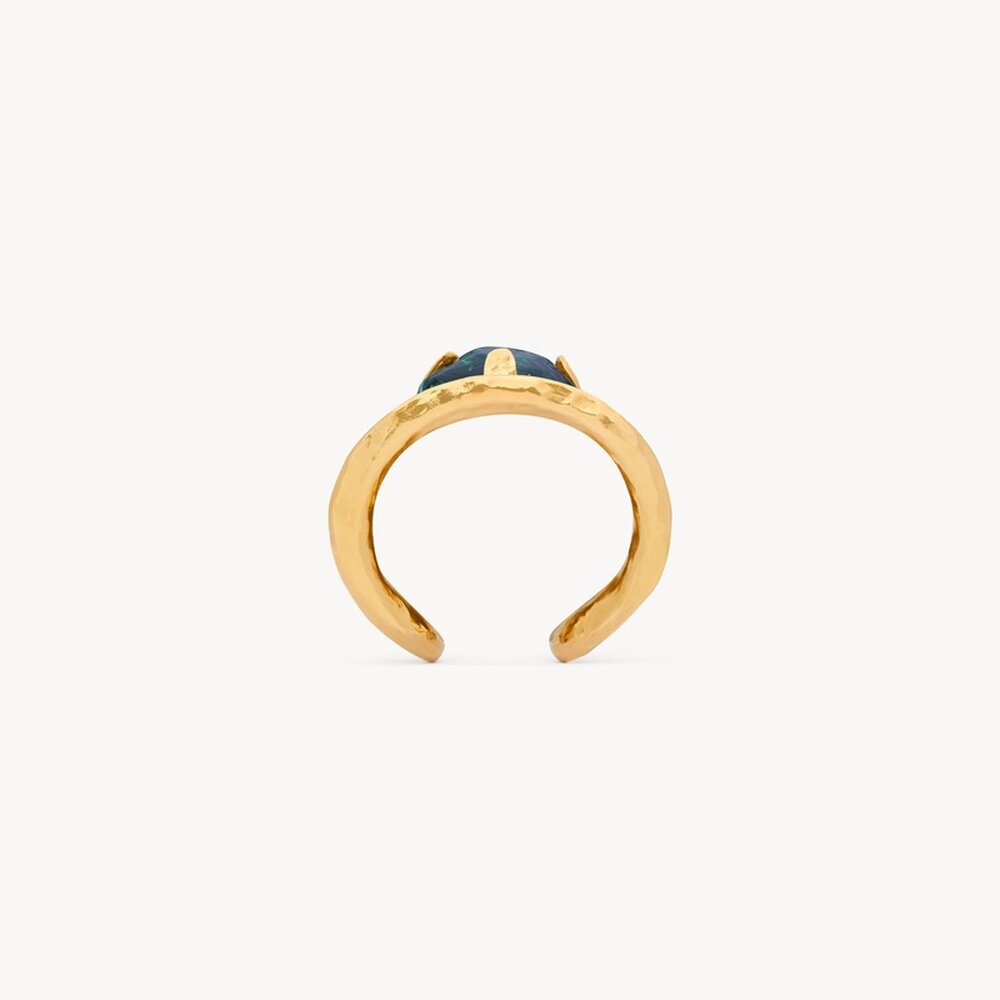 自营欧洲直邮YSL圣罗兰 女士深绿色/金色黄铜锤纹开口手镯