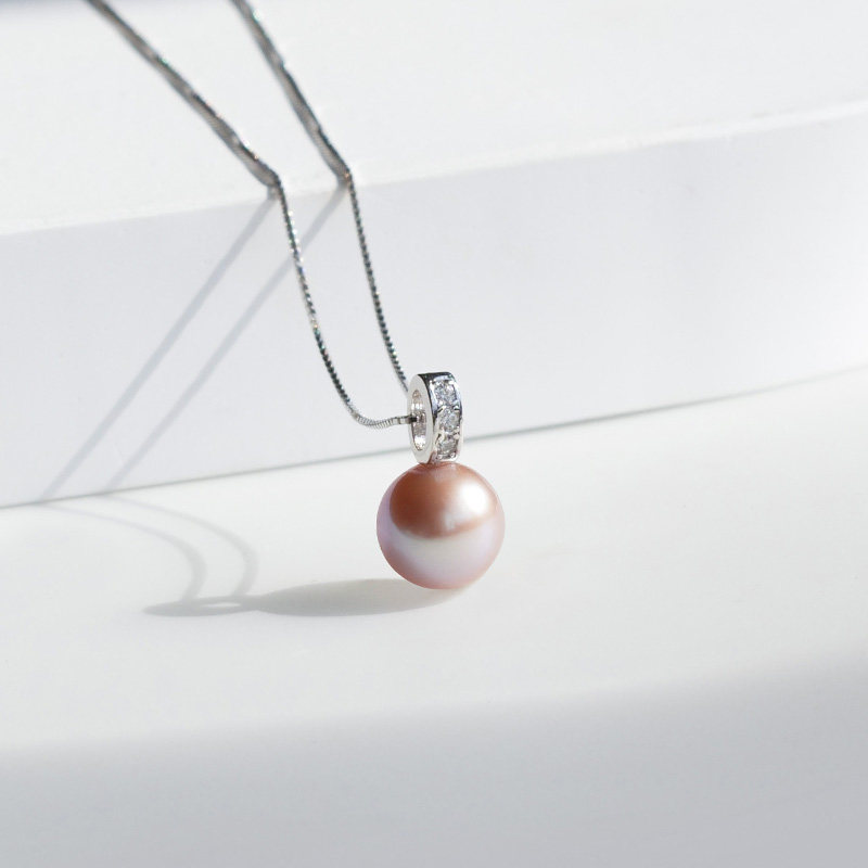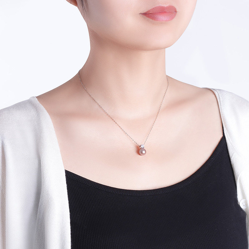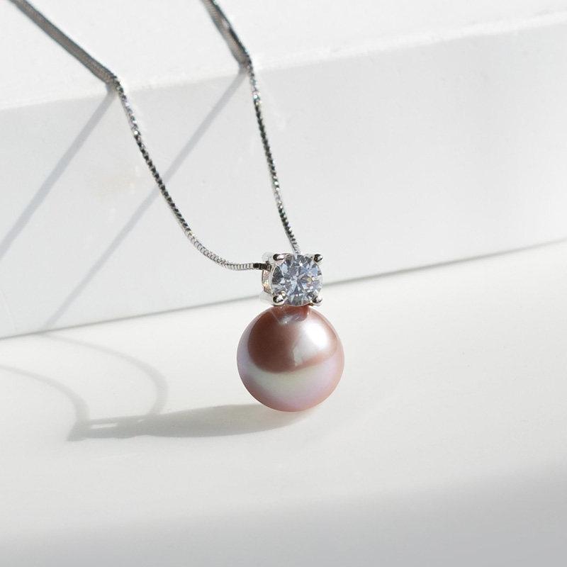 正圆珍珠项链吊坠天然淡水珍珠925银链粉色紫色气质款正品毛衣链