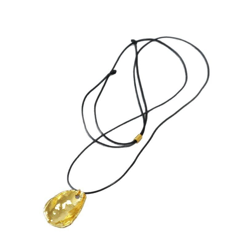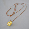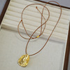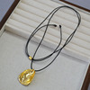 春夏新款黑色皮绳简约黄铜镀金不规则卷曲瓦片吊坠长款项链毛衣