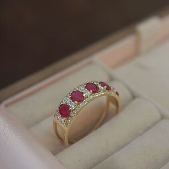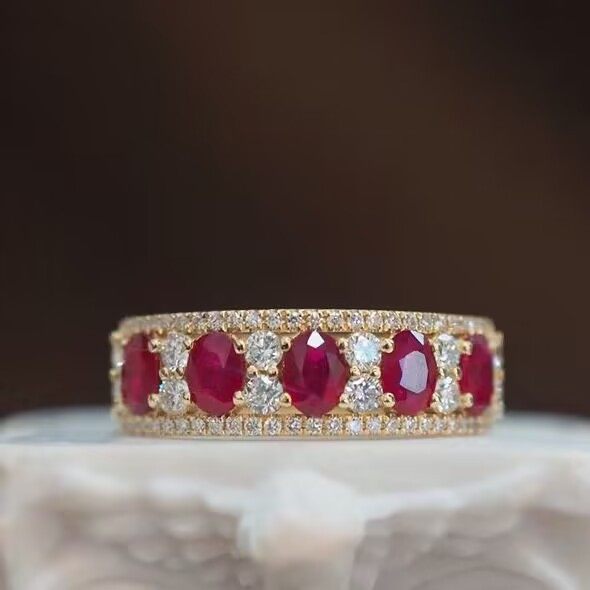 欧美轻奢风锆石红宝石鸽血红戒指排戒经典设计复古法式气质经典