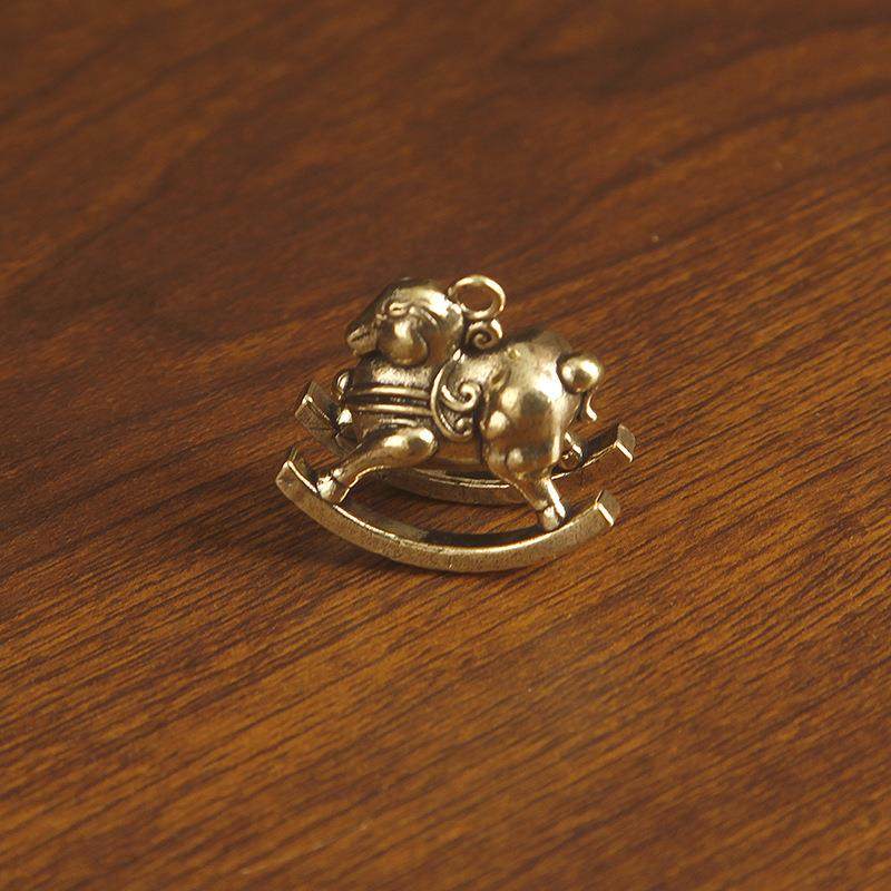 新款复古黄铜迷你木马摇摇马创意摆件马年生肖马创意挂件钥匙扣