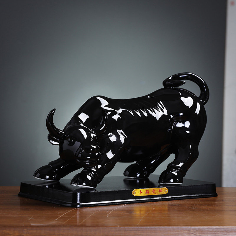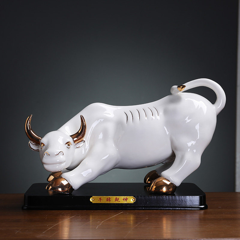 黄色描金华尔街牛招财摆件陶瓷客厅办公室装饰摆设开业乔迁礼品