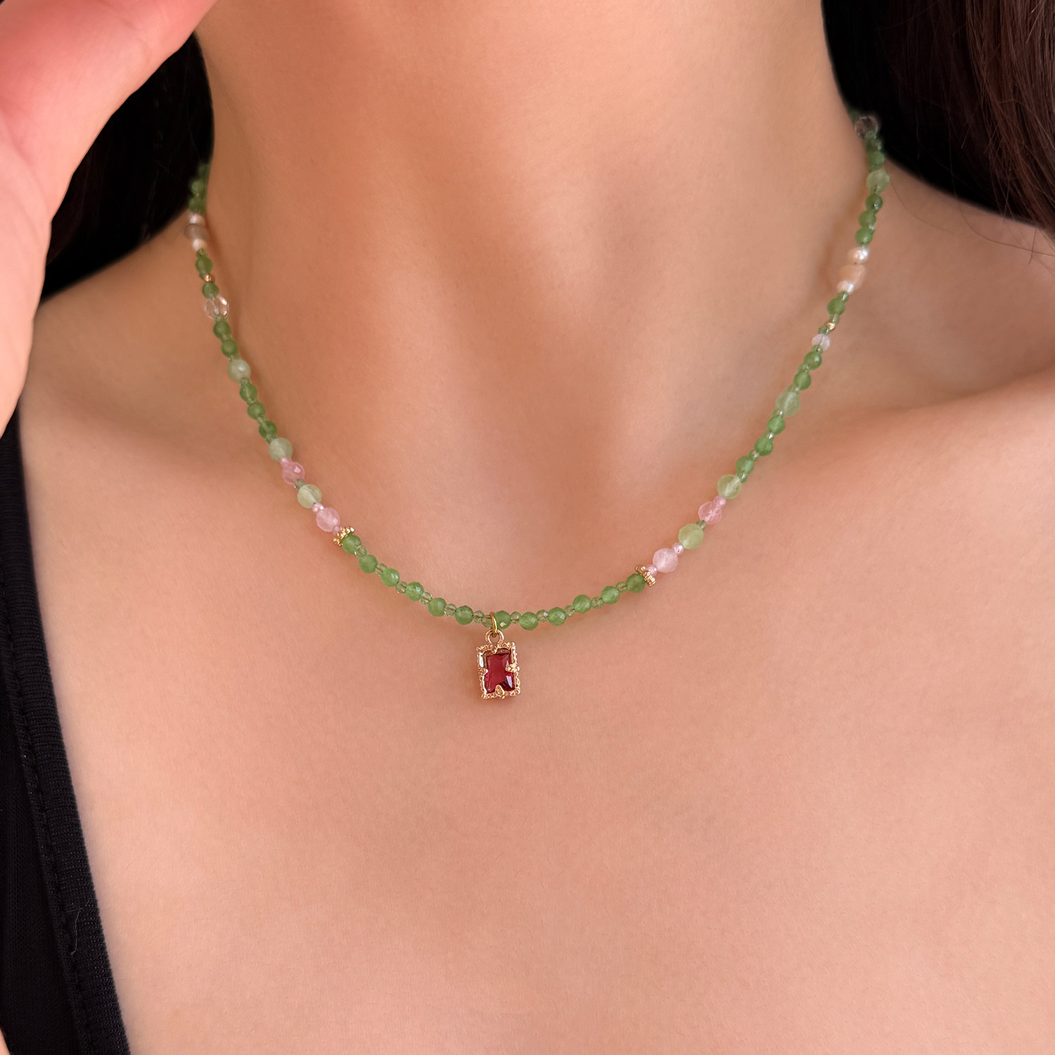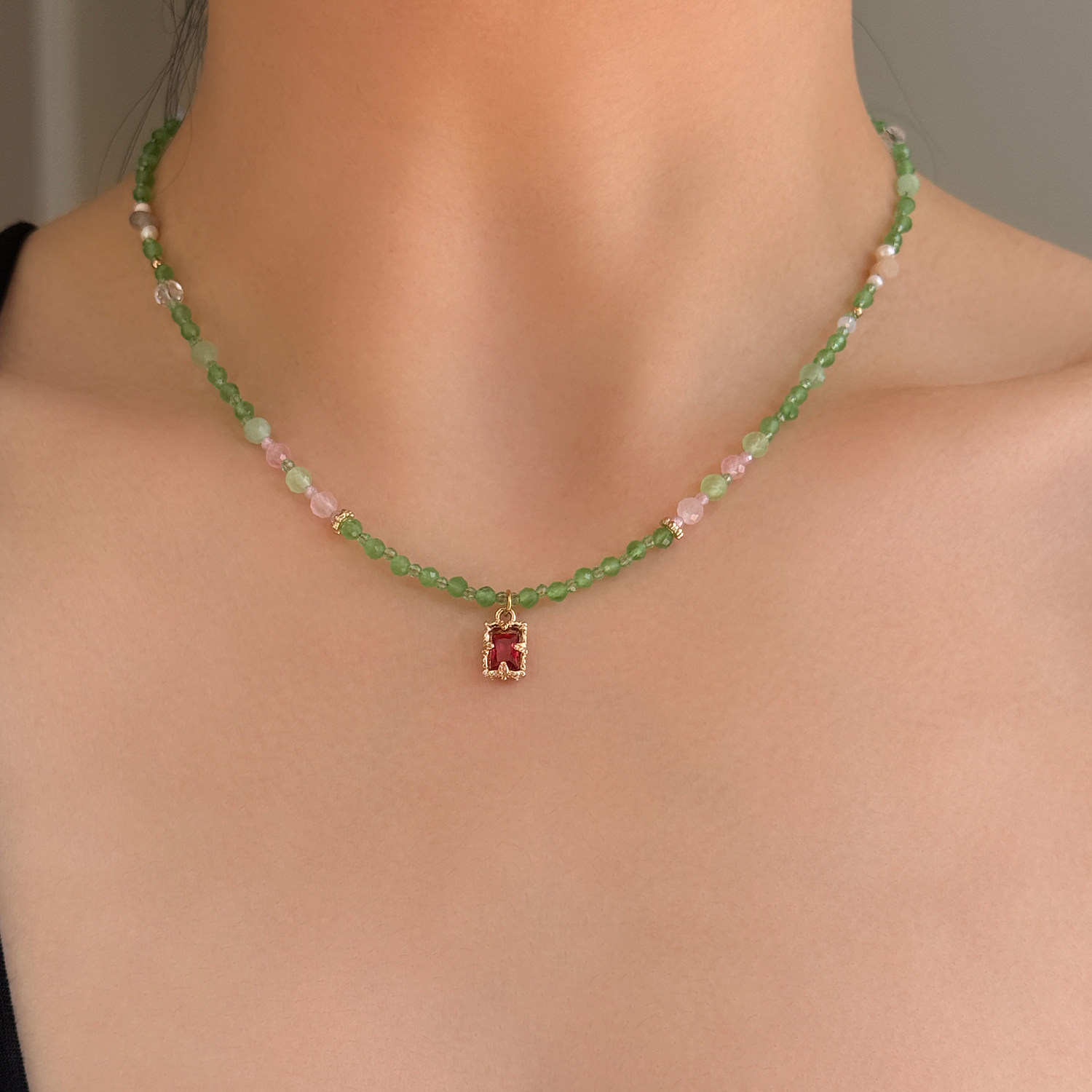 新品88折】青绿色显白串珠项链女轻奢高级感精致小众夏天锁骨链