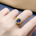 天然碧玺蓝宝透辉石戒指女S925银镶嵌精致小众百搭通勤送女友礼物