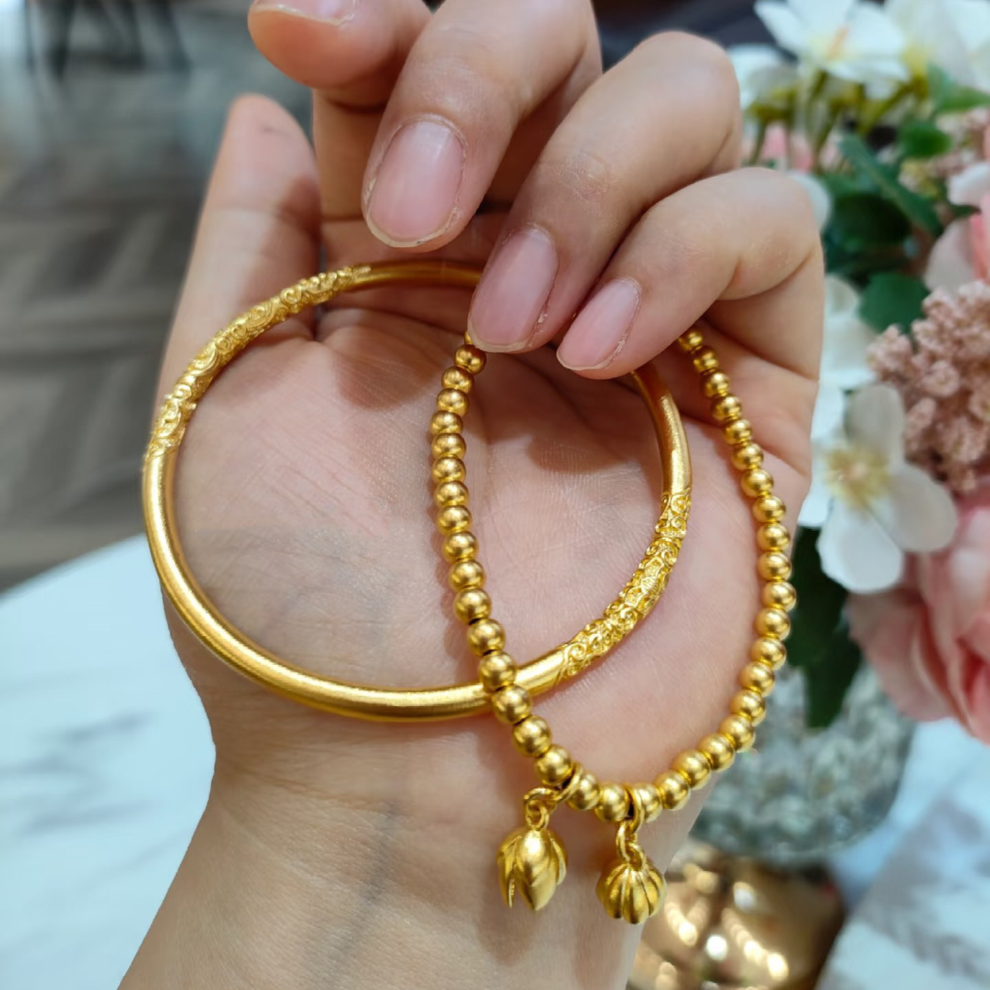 金包银古法传承两世欢手链女金色莲花莲蓬转运珠珠手串过节送礼物