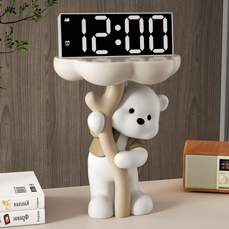 奶油风捧花熊时钟摆m件轻奢客厅玄关装饰桌面置物架高端大气上档