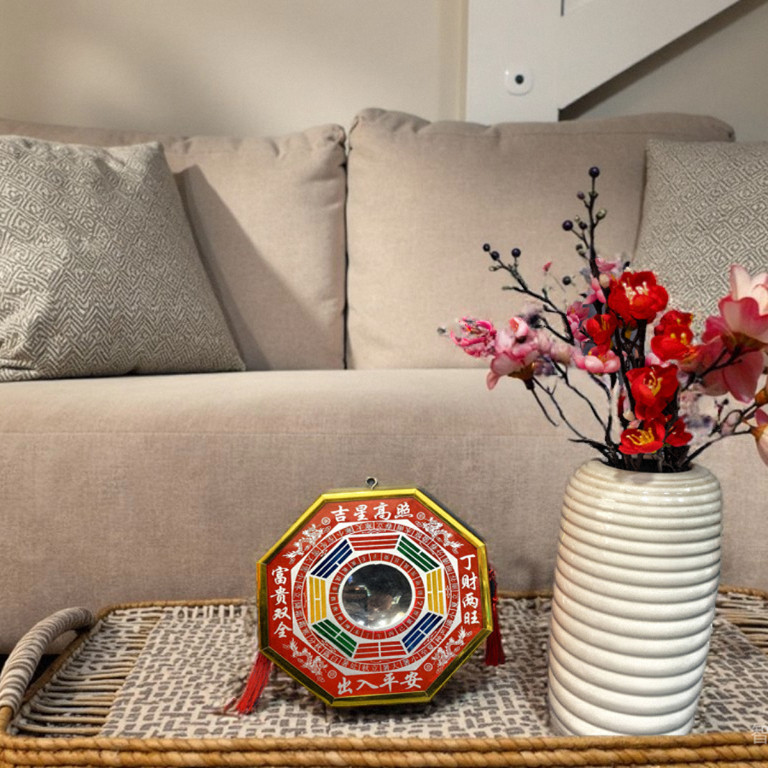 八卦镜大门凹凸镜八角九宫太极平面镜子五帝钱铜葫芦门口聚a0117