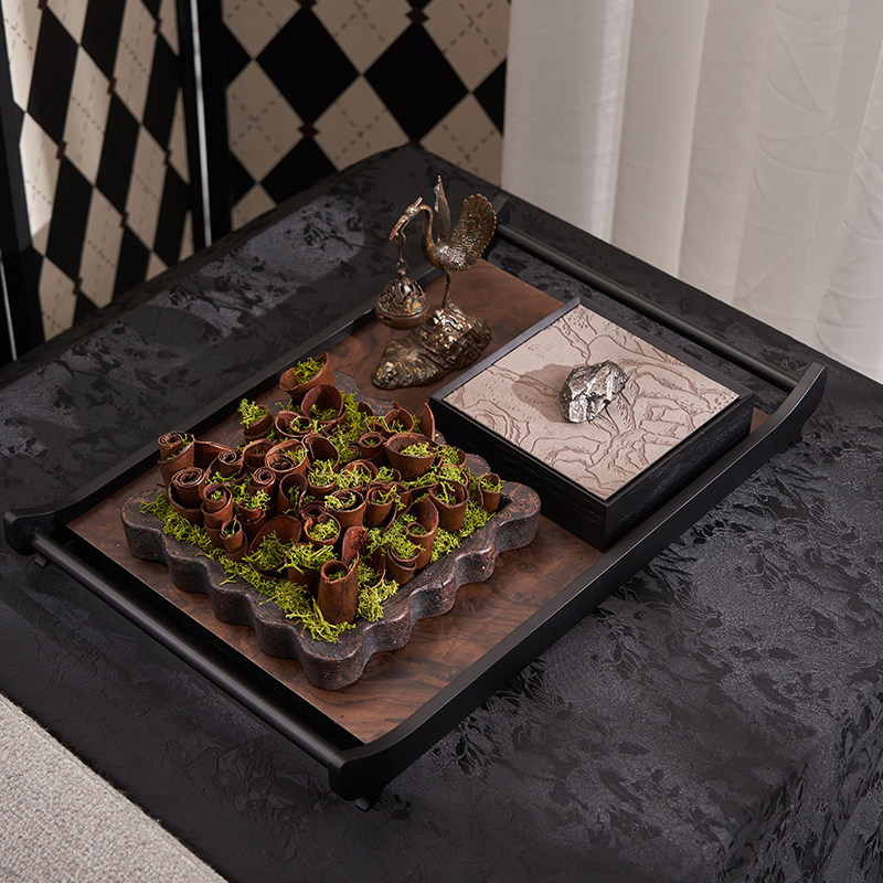 老钱风茶空间实木托盘长方形茶盘木质装饰盒收纳首饰盒搭配高级感