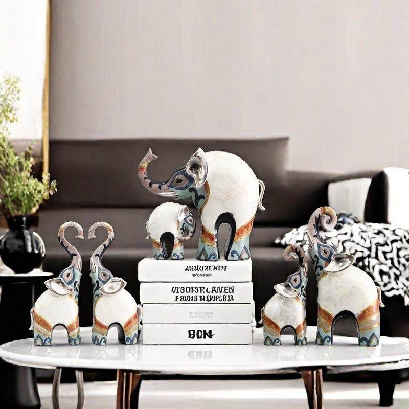 轩礼家居摆件东南亚风彩绘贝壳大象手工制作现货供应酒店装饰可小