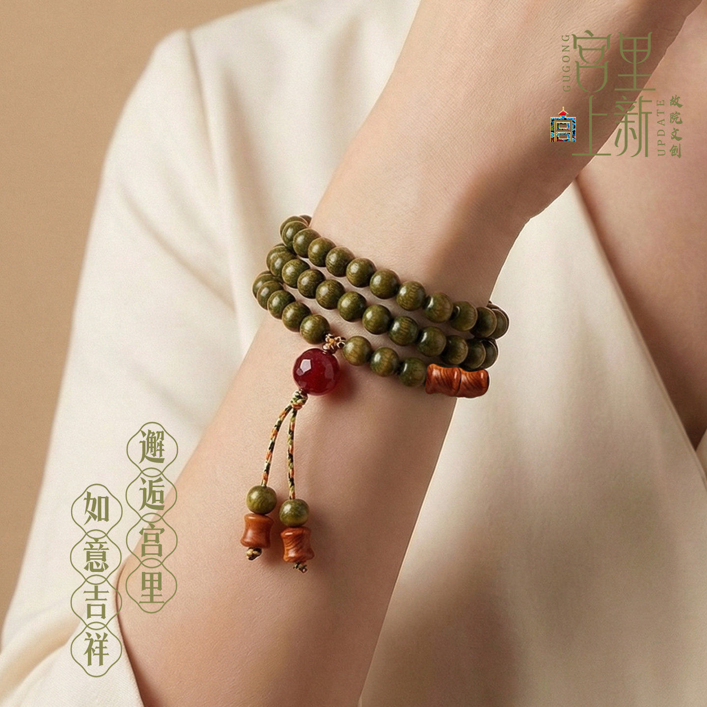 宫里上新绿檀木手串女款檀香木质文玩佛珠念珠108颗绿色手链男士