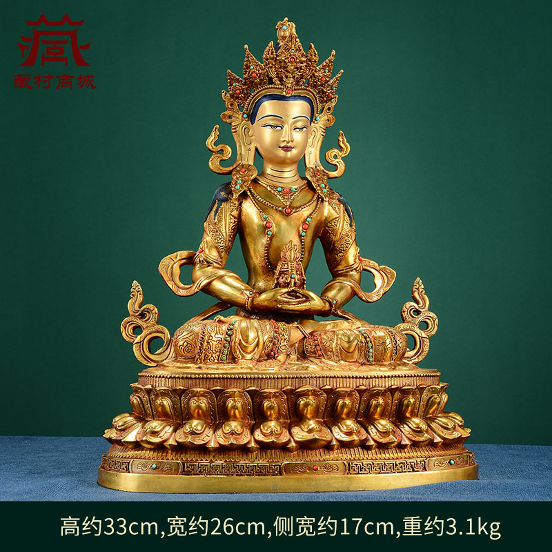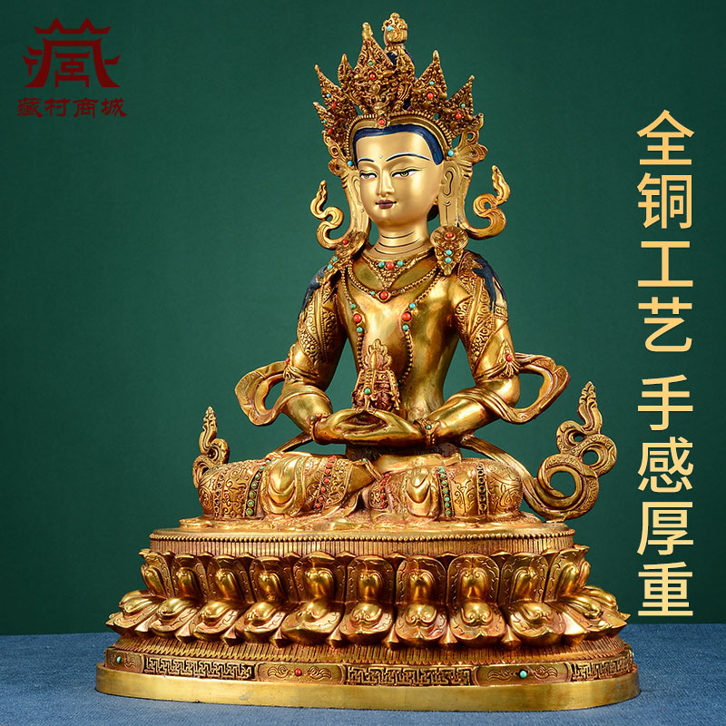 精工铜《常寿佛》室内家用全鎏金《长寿佛》桌面铜像装饰摆件
