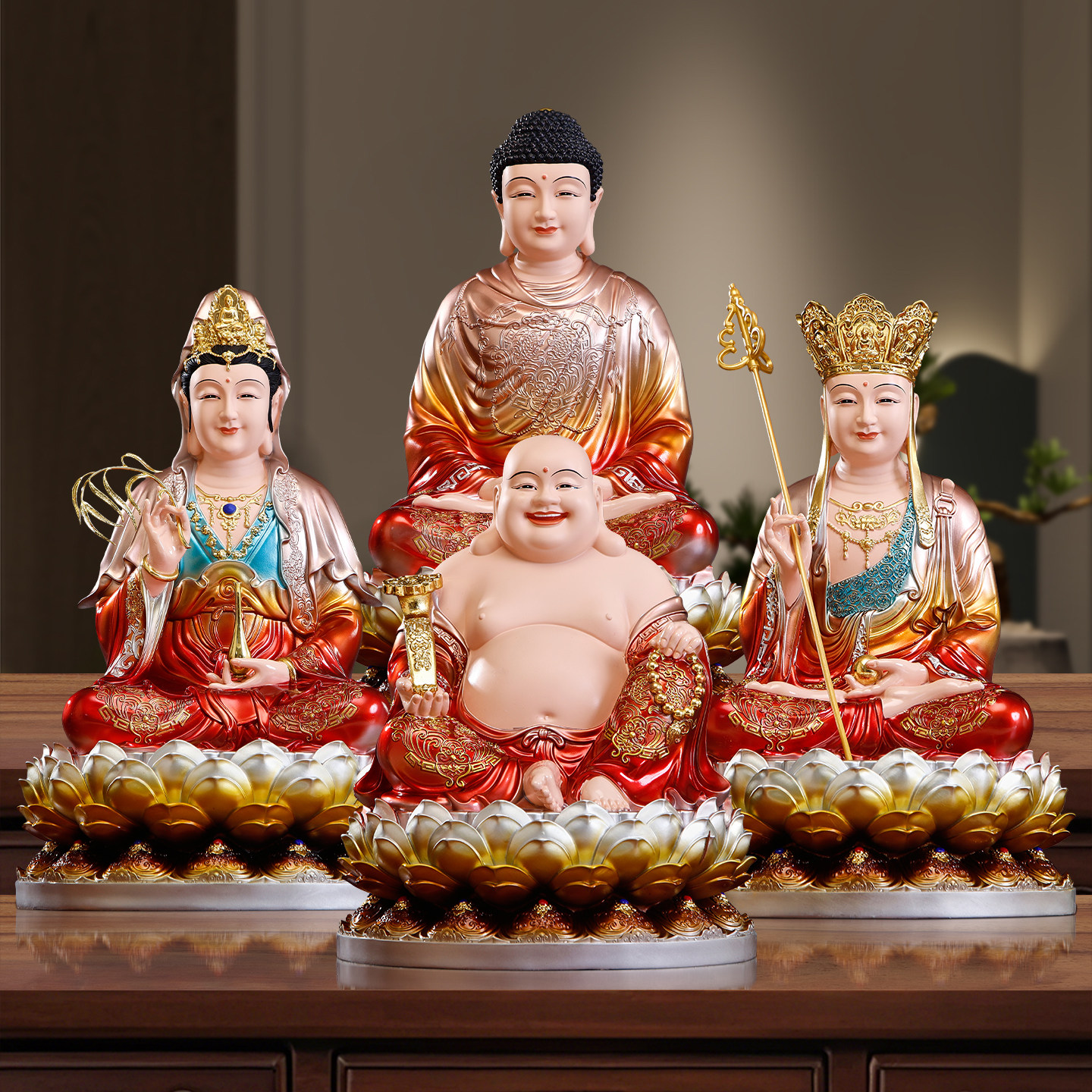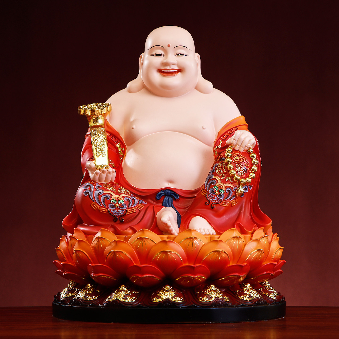 树脂全莲弥勒佛菩萨铜彩大肚笑佛供奉招财摆件开心弥勒佛像全堂佛