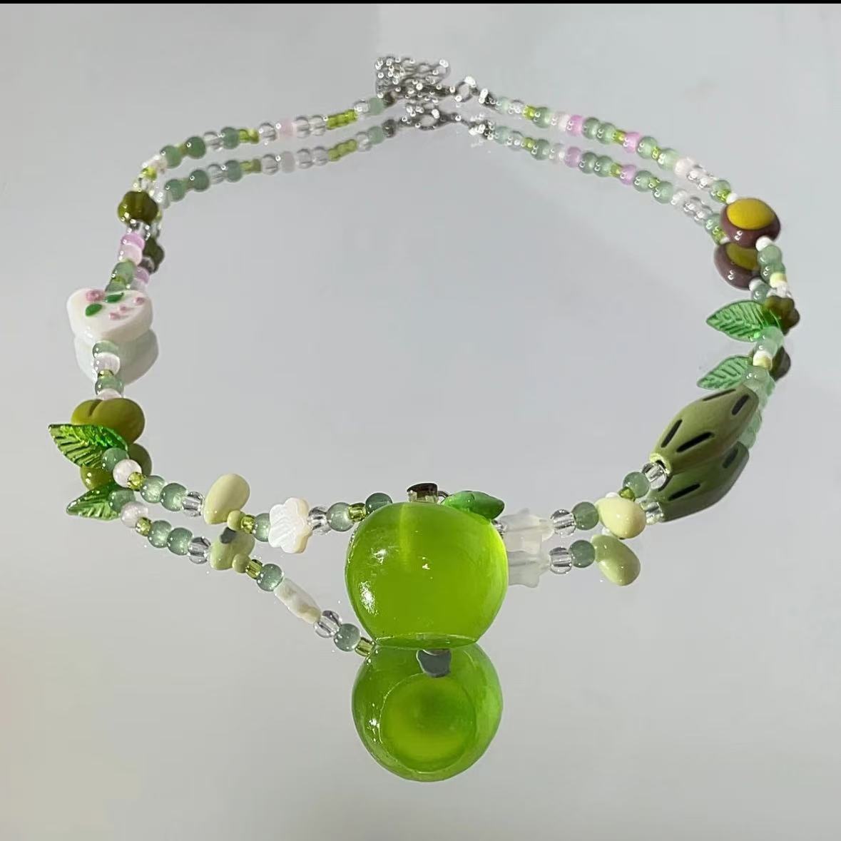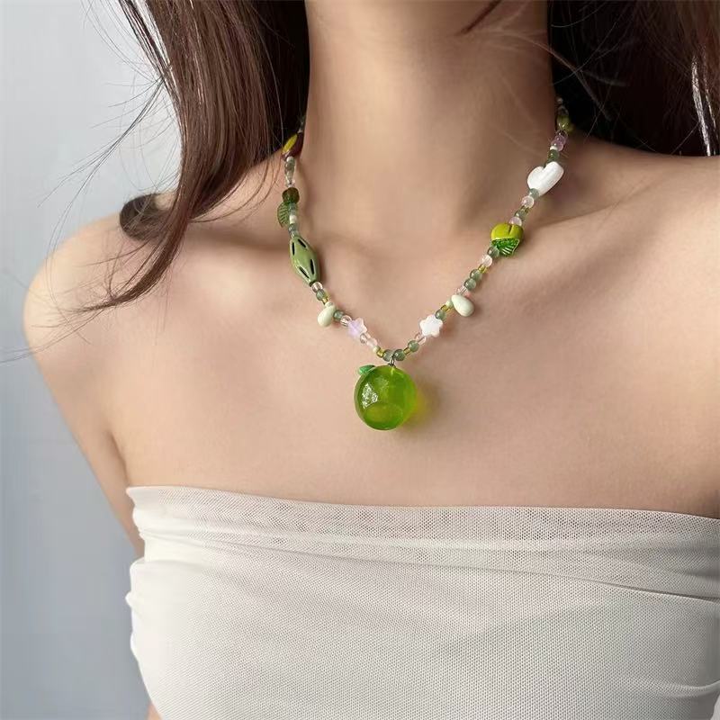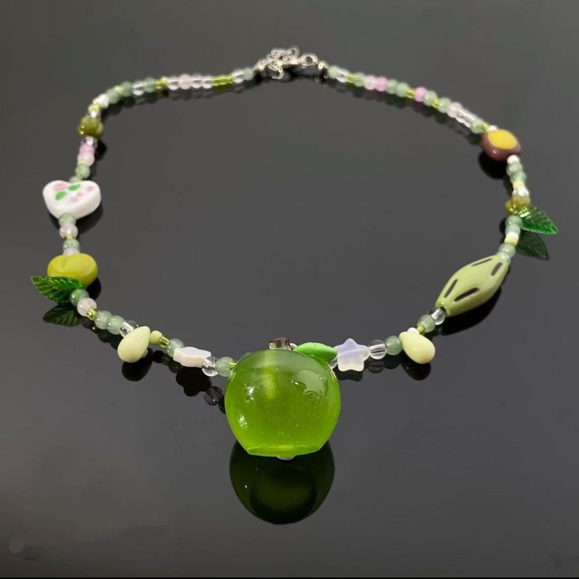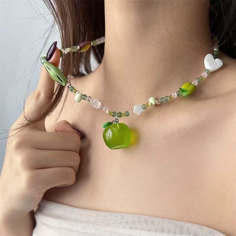 超仙多巴胺薄荷绿青苹果水晶项链女甜美森系少女风星星串珠锁骨链