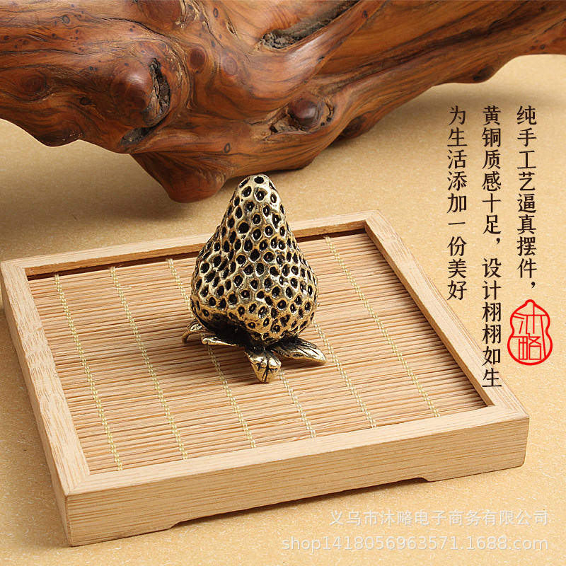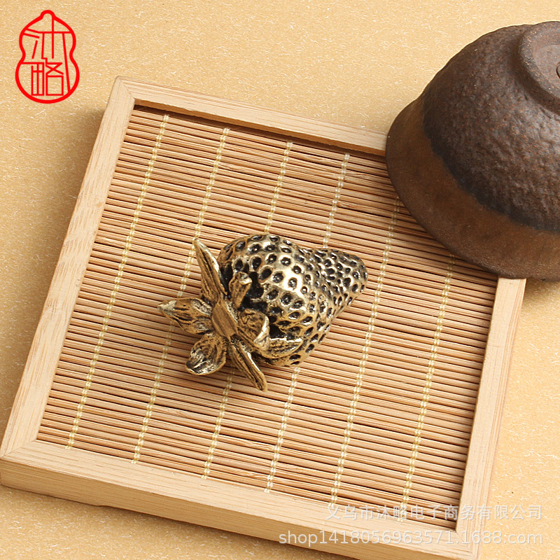 黄水果草莓摆件铜仿真铜工艺品手件办公桌面茶宠装制饰把草莓摆件