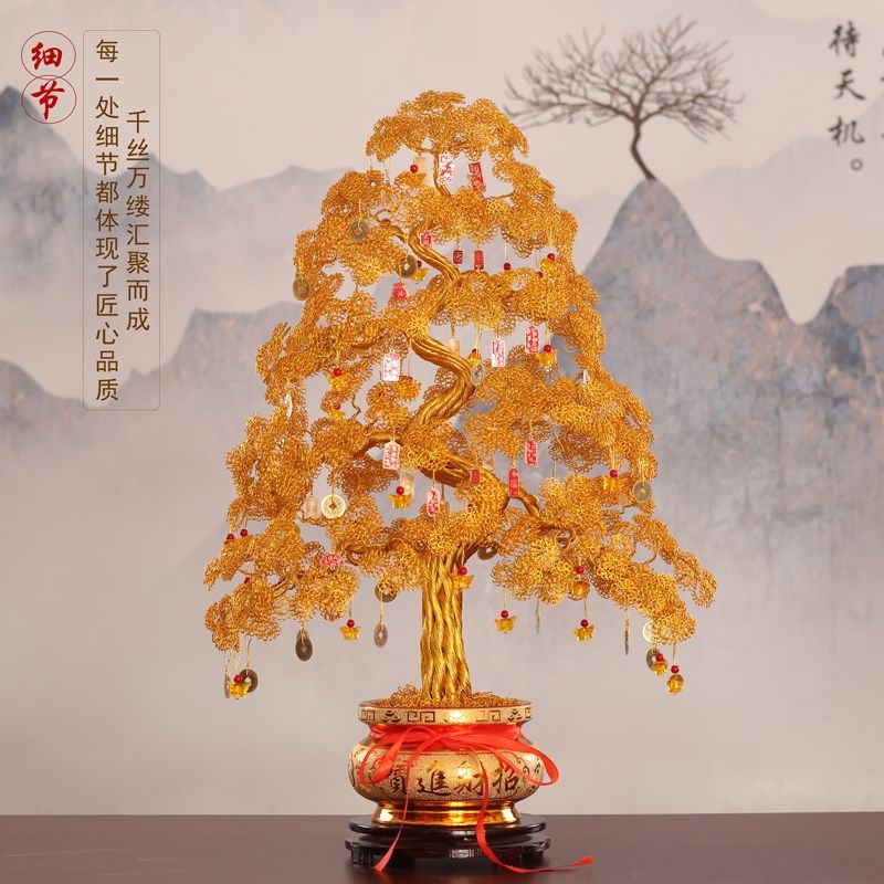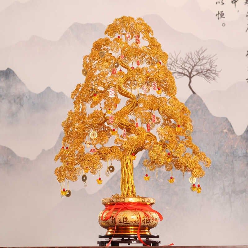 手工编织摇钱树摆件招财发财树客厅玄关装饰品乔迁开业礼品送朋友