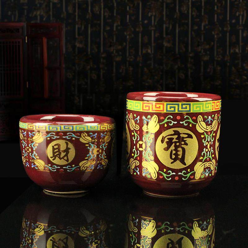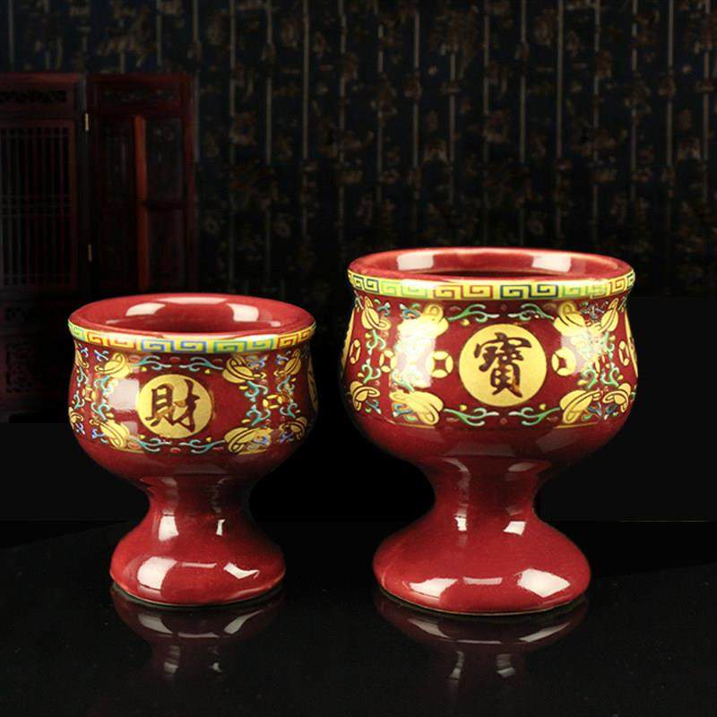 朱红陶瓷供碗供水杯拜拜汤碗斋饭碗招财茶杯酒杯供水杯神台贡品