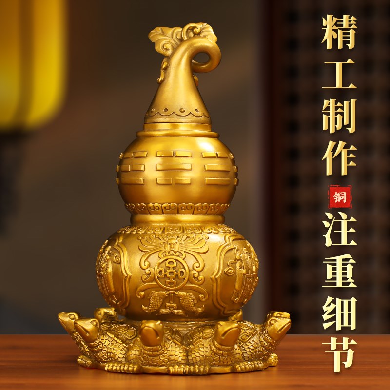 黄铜天医葫芦九龟葫芦开口空x心开盖玄关客厅卧室大号居家装饰摆