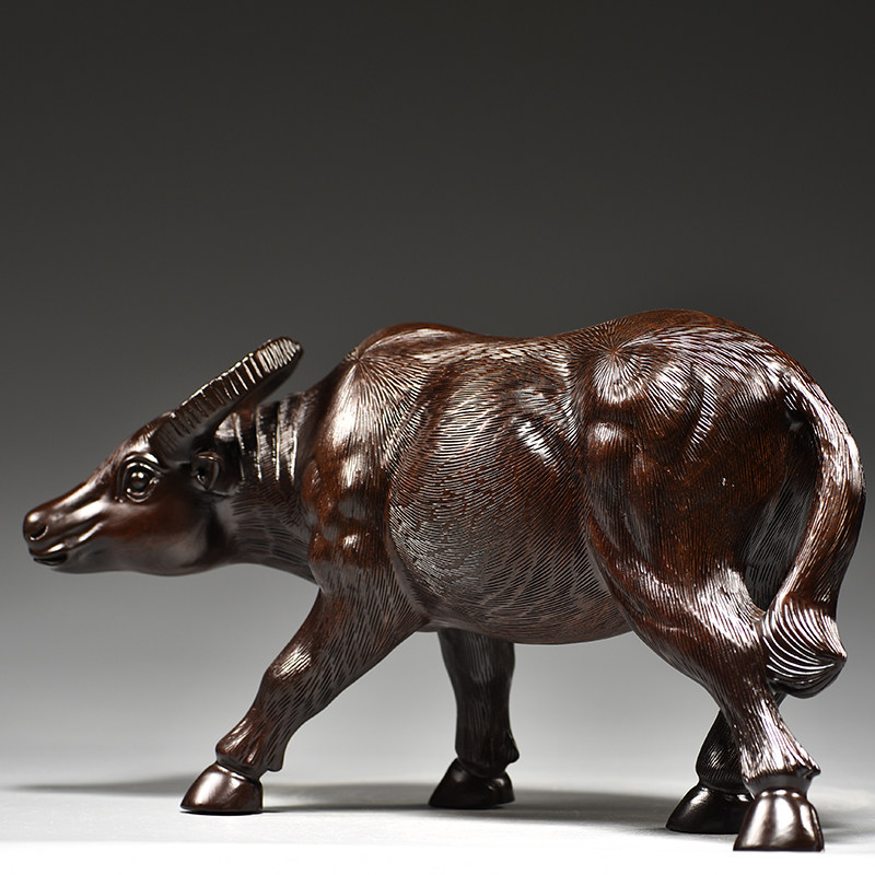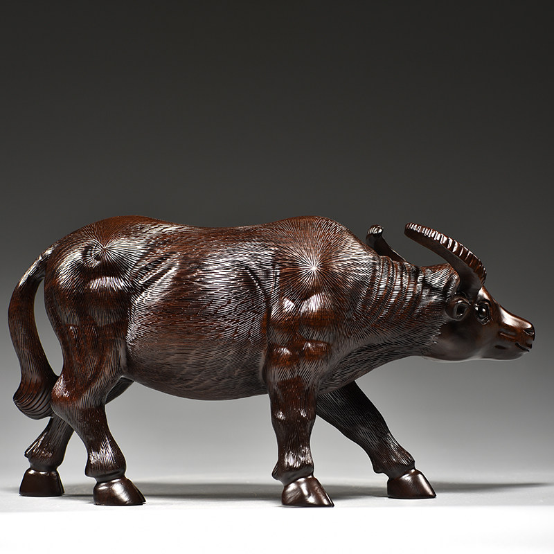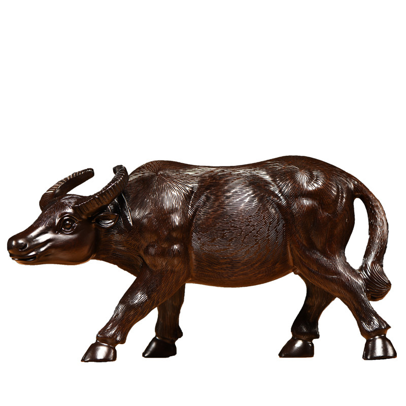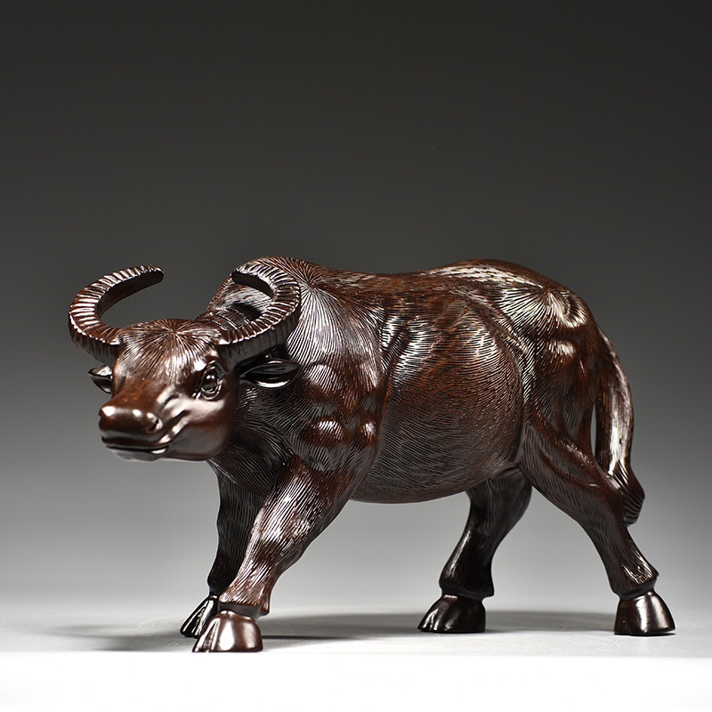 黑檀木雕牛摆件牛气冲天实木水牛工艺品十二生肖动物家居红木装饰