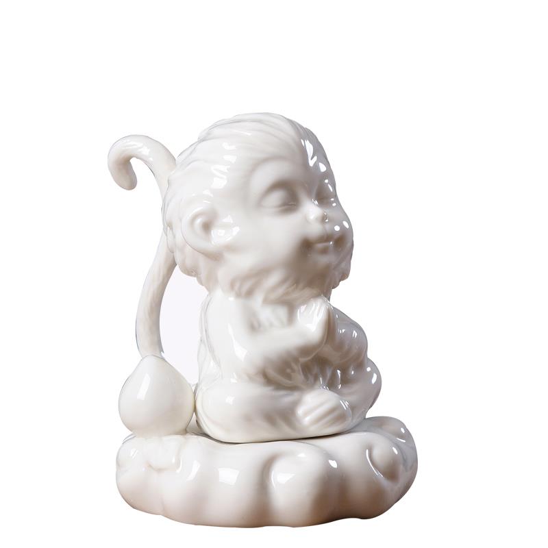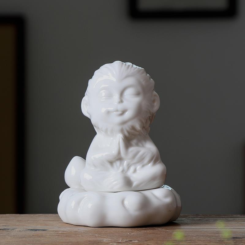 精品白瓷齐天大圣孙悟空陶瓷禅意茶宠摆件小猴子鱼缸造景家居饰品