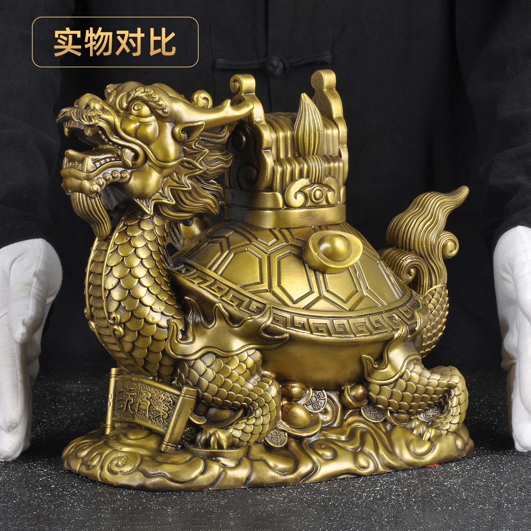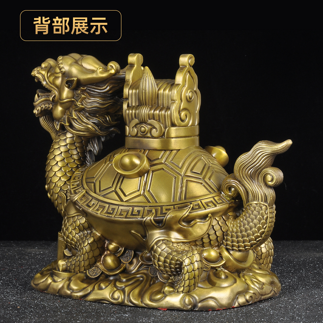 纯黄铜龙龟摆件三元及第招财龙头龟风水家居客厅玄关风水装饰品