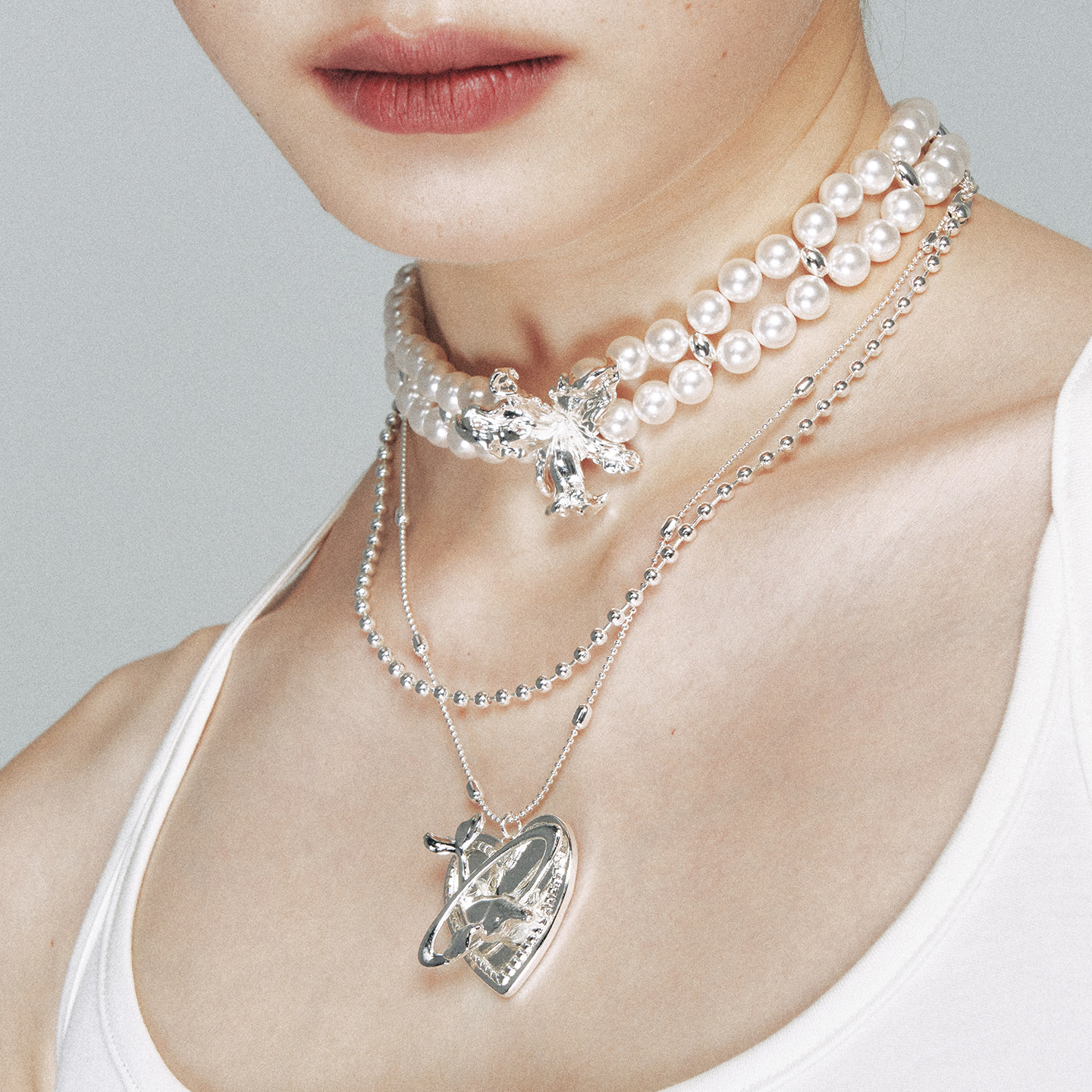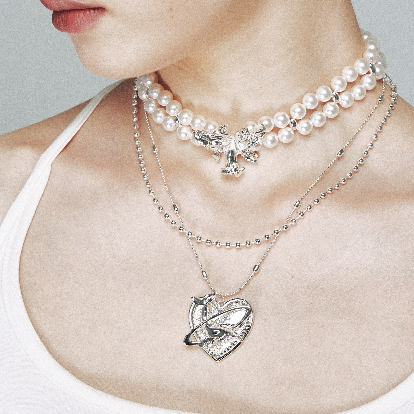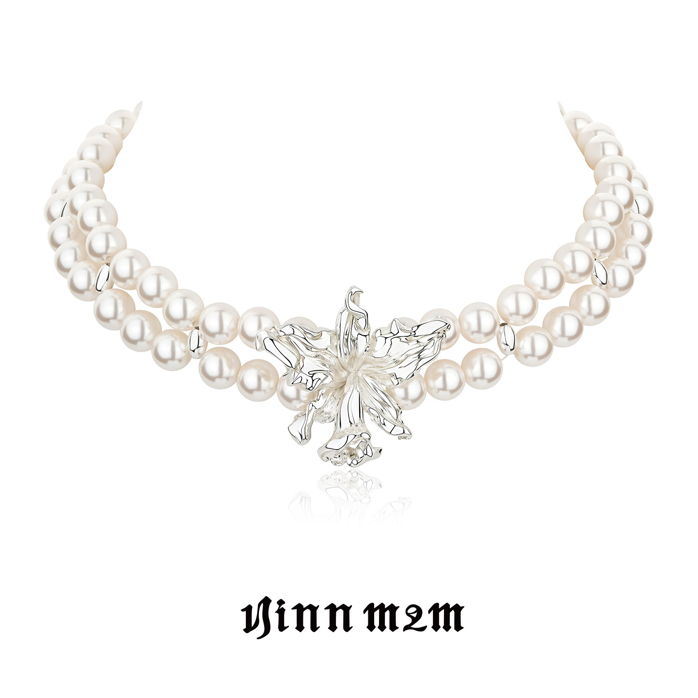 1JINN M2M 双层珍珠金属花朵choker女小众轻奢设计感锁骨链