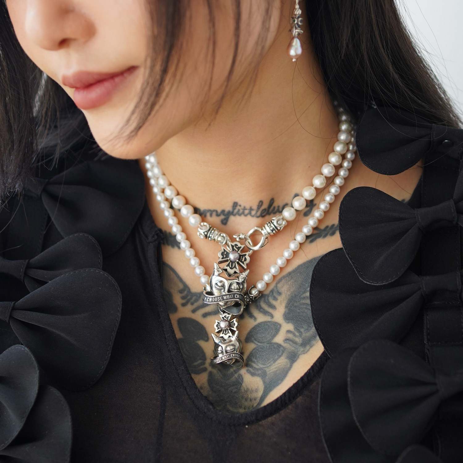 睡莲生生世世 原创设计925纯银小恶魔吊坠天然灰紫色珍珠复古挂坠
