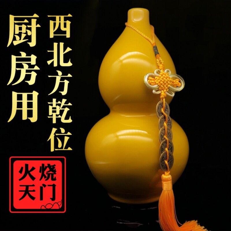 黄色陶瓷葫芦摆件化厨房西北角火烧解乾天门卦西南缺角昆仑五色土