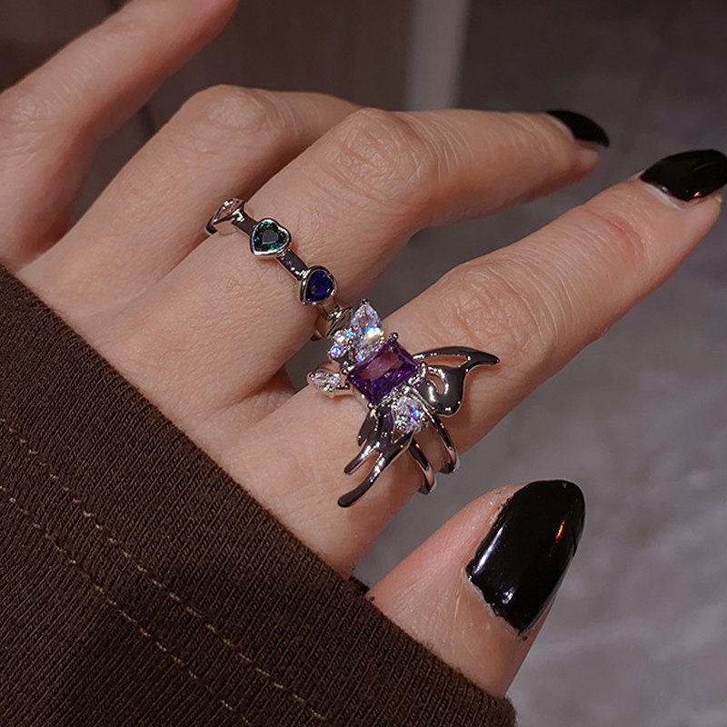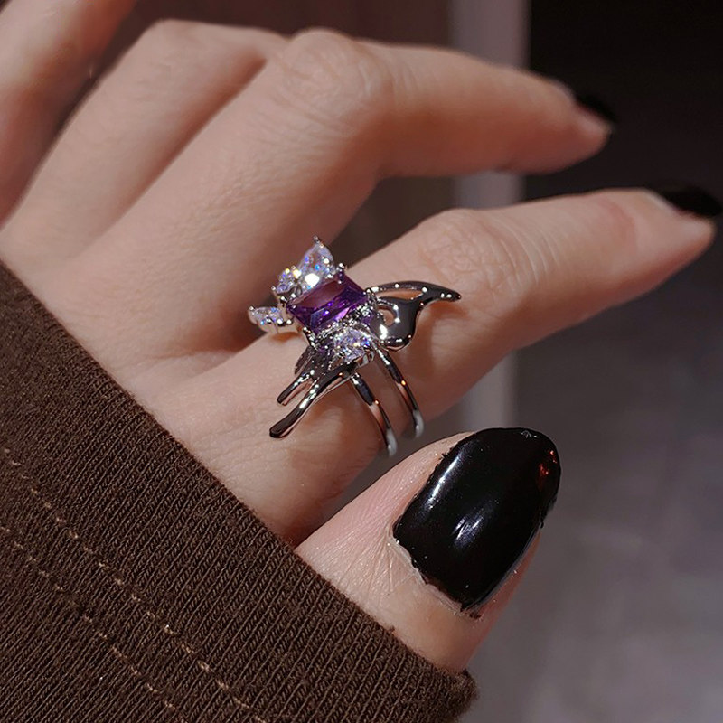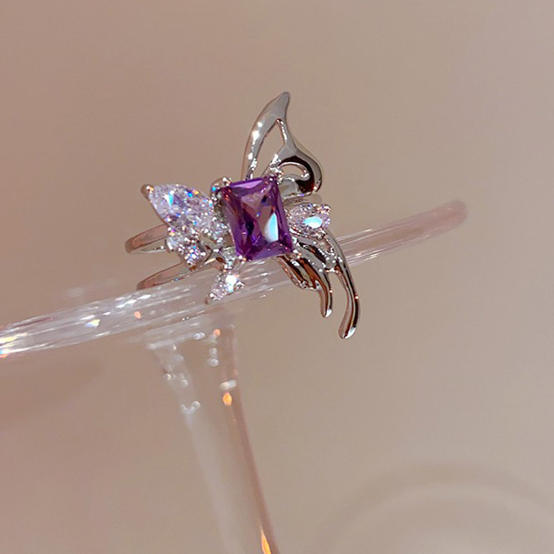 小众设计镂空蝴蝶紫色锆石精致开口戒指女ins冷淡风气质个性指环