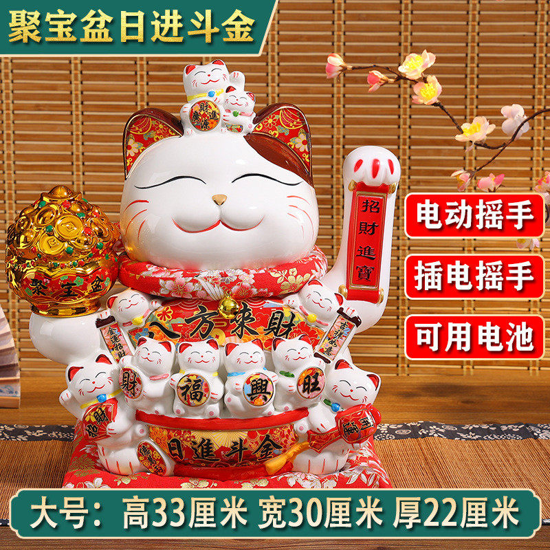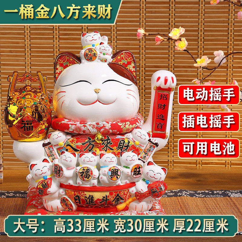 聚缘猫摇手招财猫陶瓷摆件大号店铺开业收银创意礼品前台代发批发