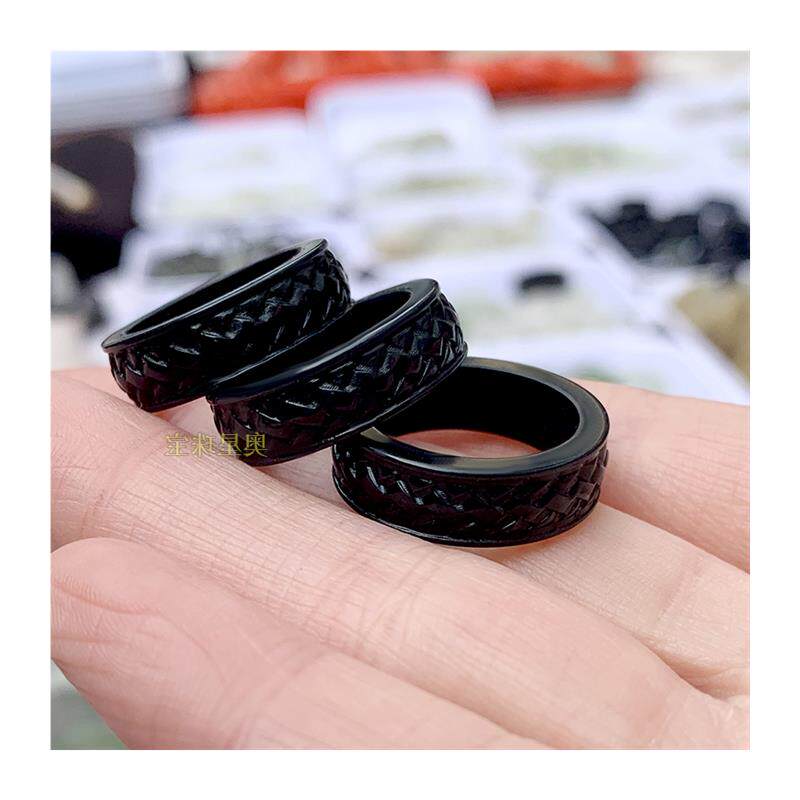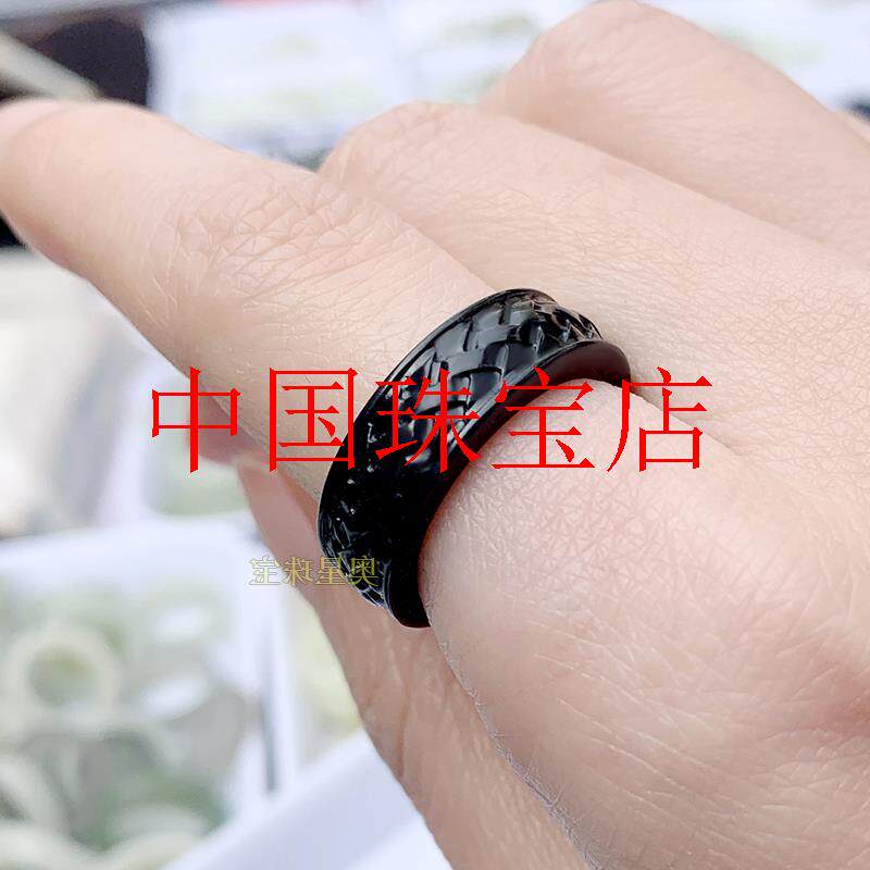 精品和田玉墨玉戒指男女同款中国结心心相印编织款原创龙鱼扳指款