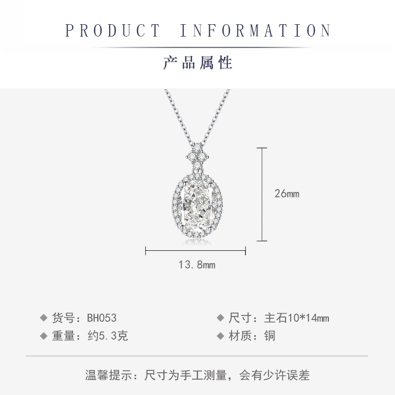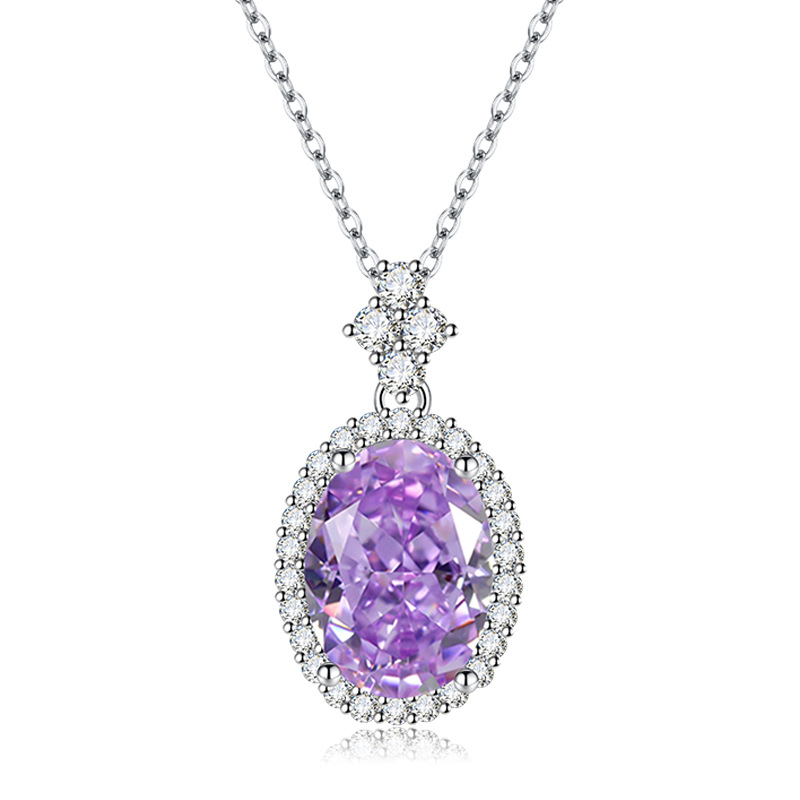 轻奢小众新款粉色冰花切高碳钻吊坠时尚高级感黄色椭圆项链彩宝款