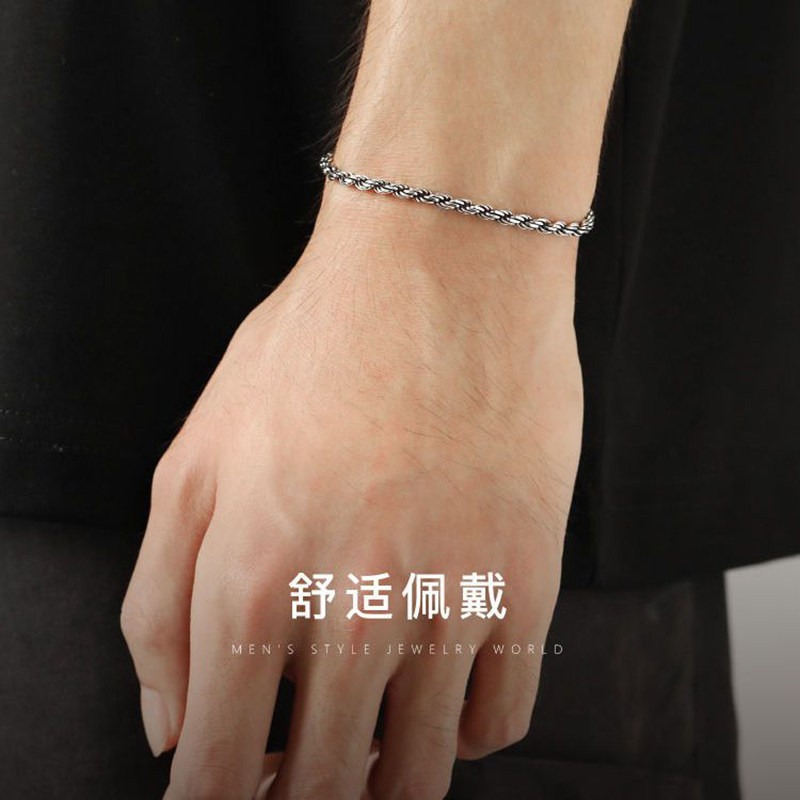 钛钢不掉色嘻哈麻花手链男款情侣手串ins潮小众设计百搭男士配饰