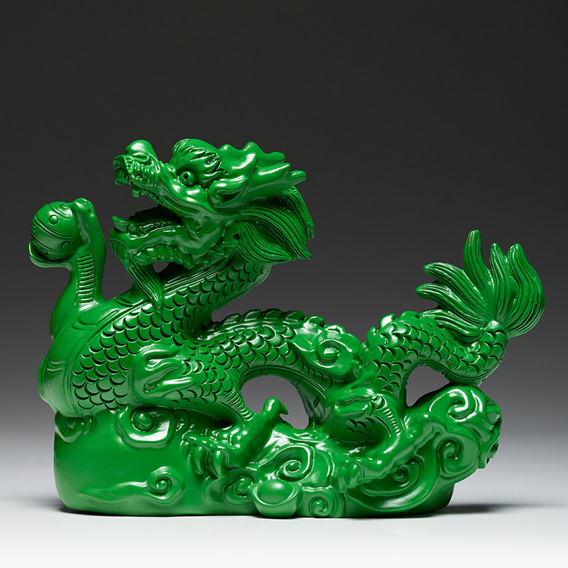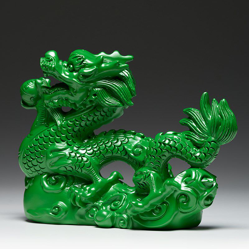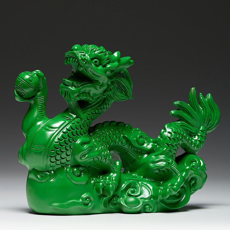 绿色木头龙摆件可爱实木制龙生肖龙木质龙客厅装饰开业送礼工艺品