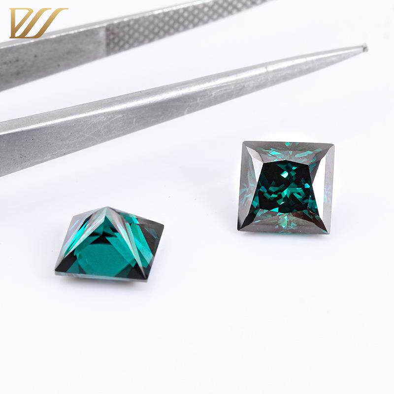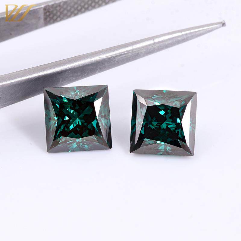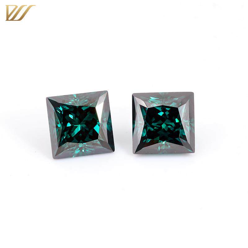 正方形深绿色莫桑 裸石厂家现货 合成碳硅石公主方绿色莫桑石