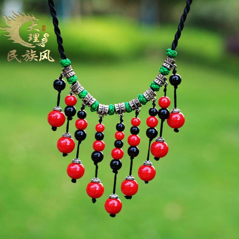 云南民族风松石项链女时尚夸张短款蓝红色水滴颈链锁骨链性感脖链