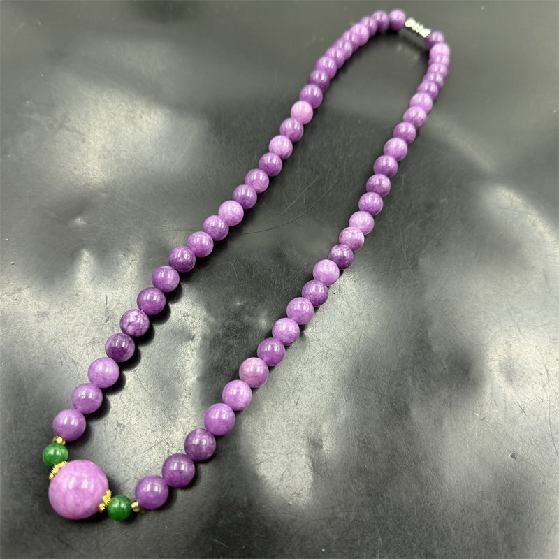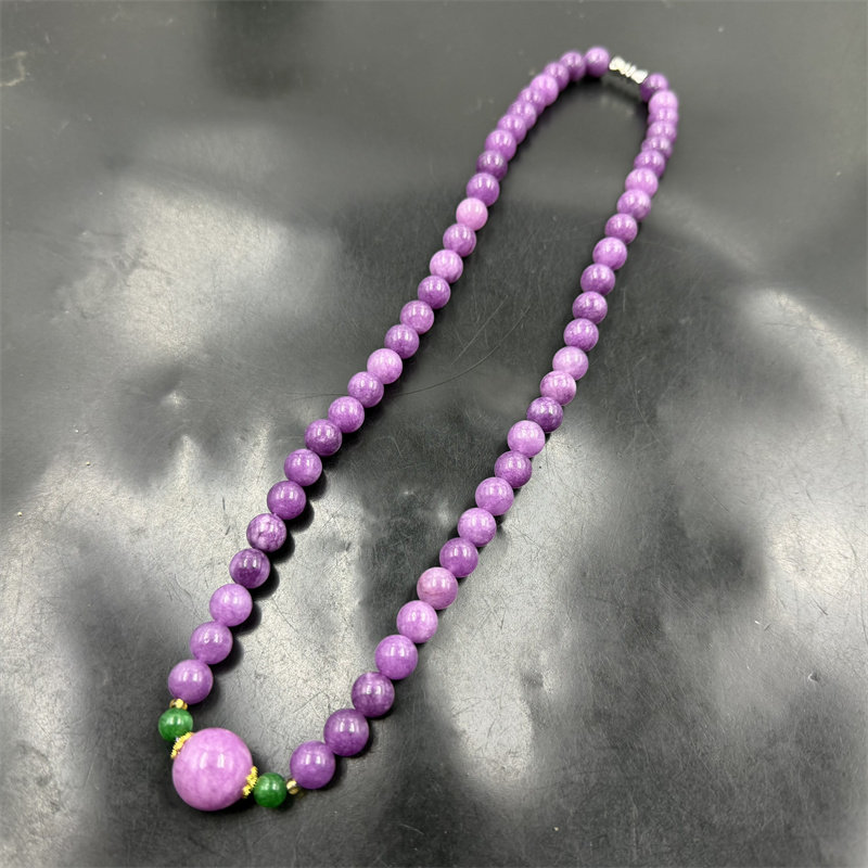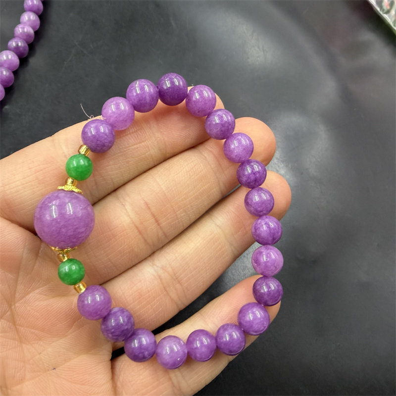 四海玉器 新款紫罗兰翠玉圆珠项链 女款锁骨链 手链手串套装