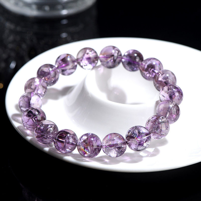 盖亚回声 天然紫阿赛圆珠手链 紫色彩虹水晶 厂家直销
