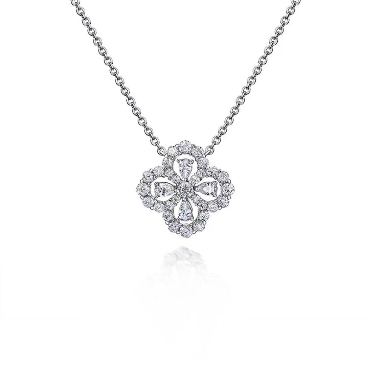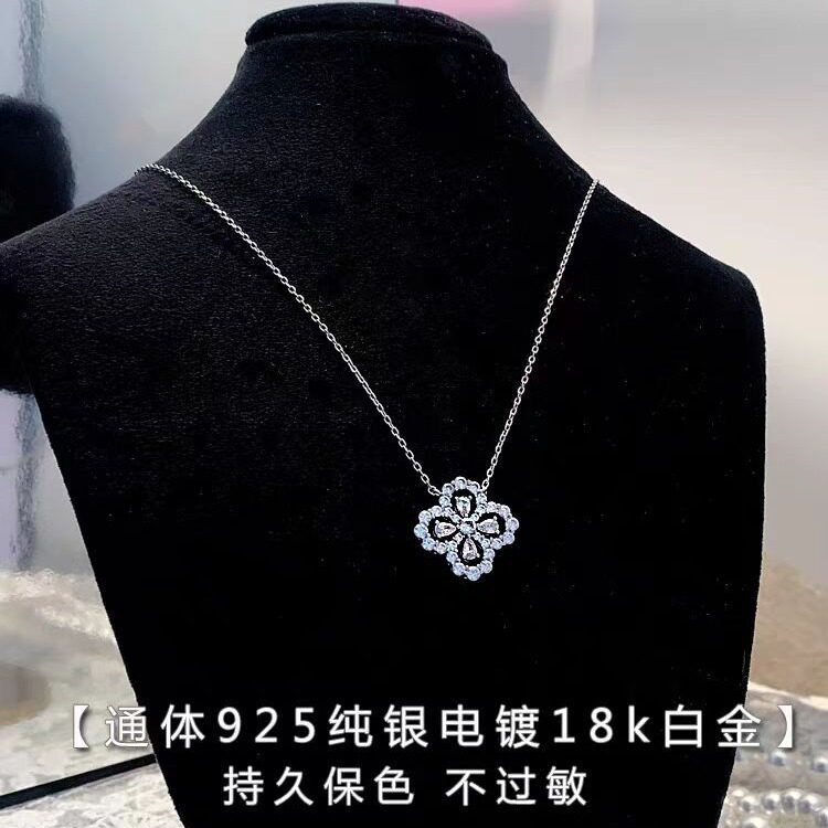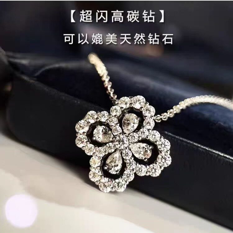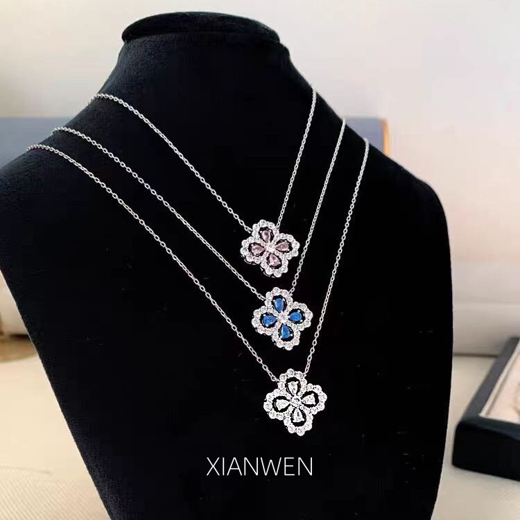 羡吻时尚高级感HW四叶草项链轻奢小众满钻吊坠女百搭通勤锁骨链