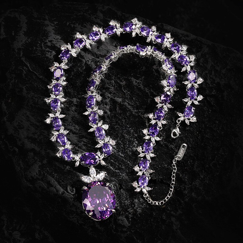时尚轻奢大气紫色项链 合成立方氧化锆